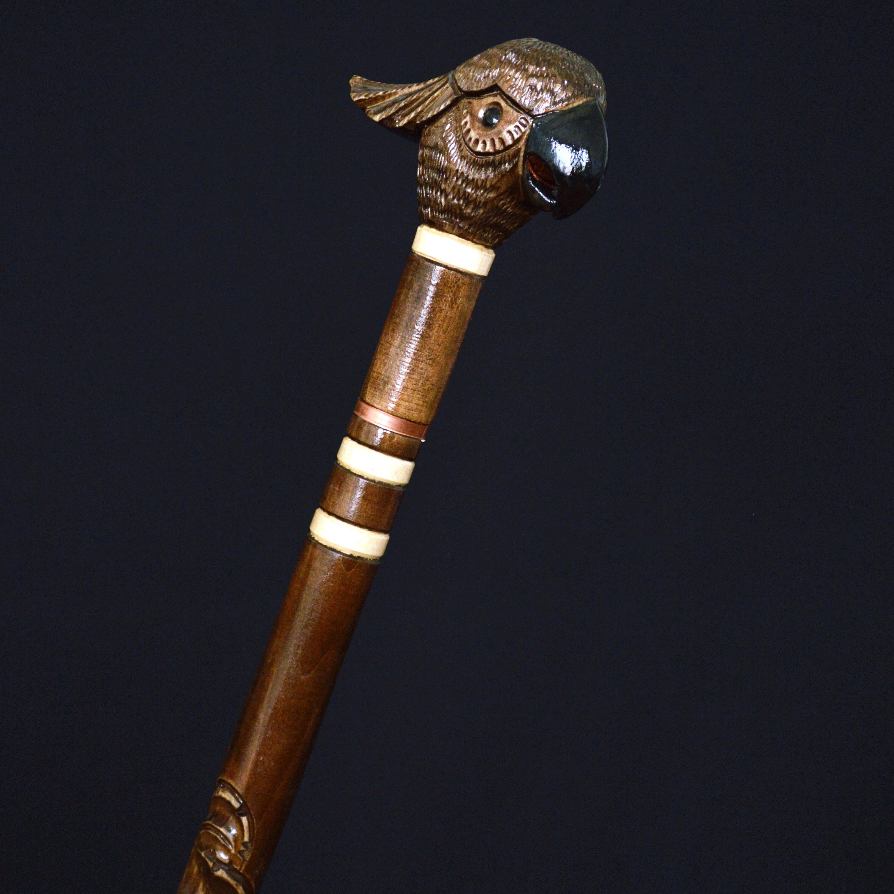Wooden Cane Walking Stick Whale Dolphin Fish - Wood Carved Cane, Co...