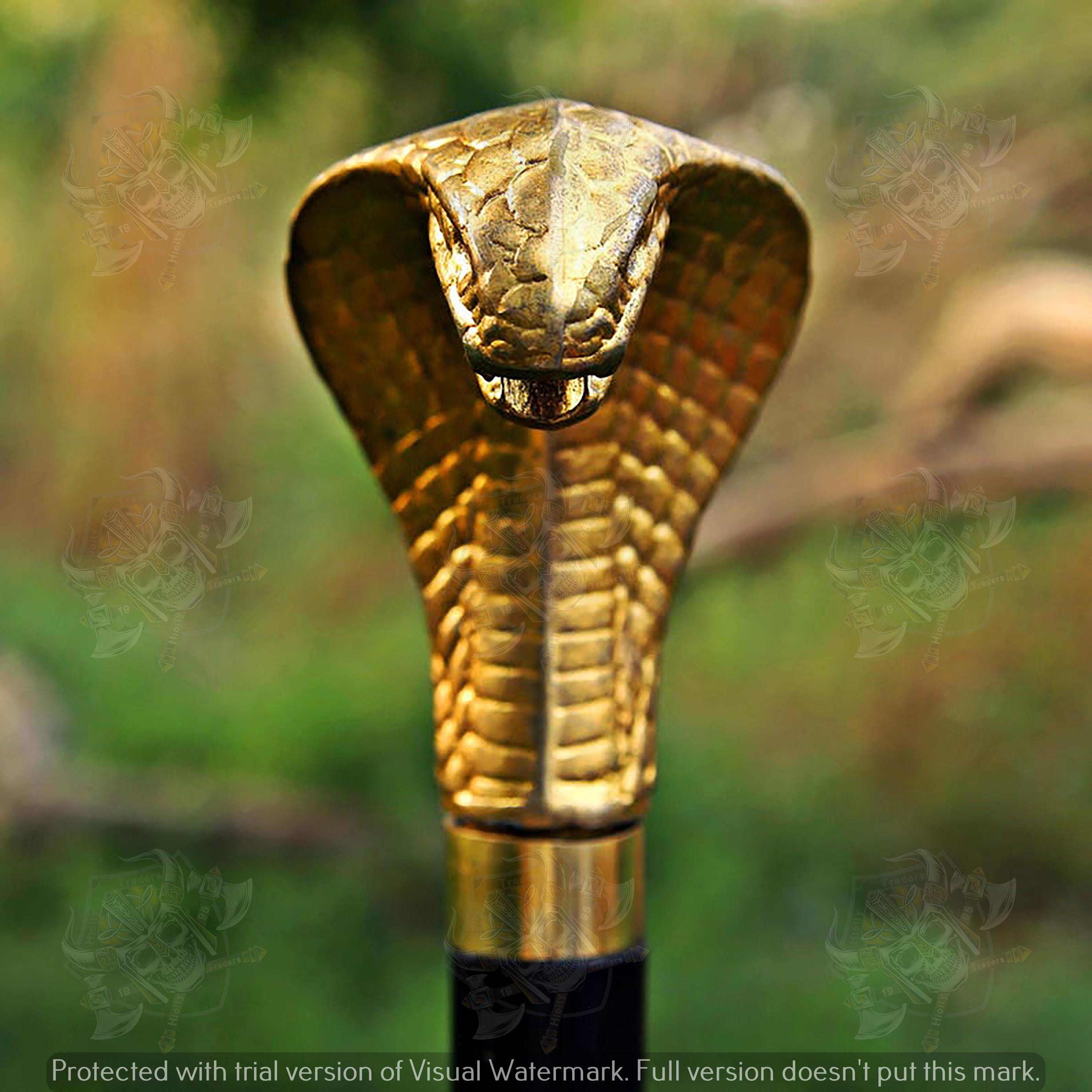 Handmade Disability Stuff Walking Stick with Cobra Handle, Decorati...