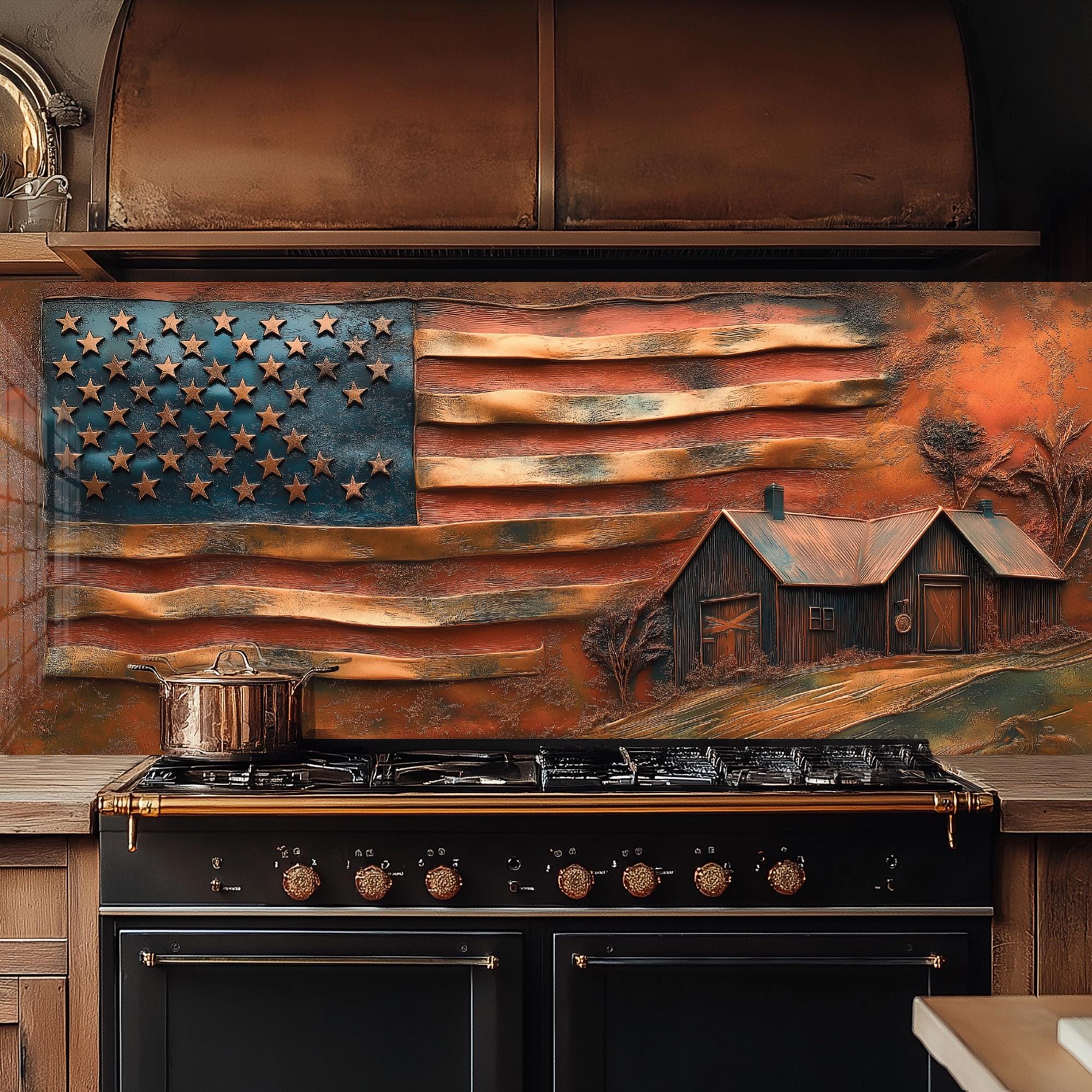 Tempered Glass Backsplash, American Flag Kitchen Splashback, Copper...