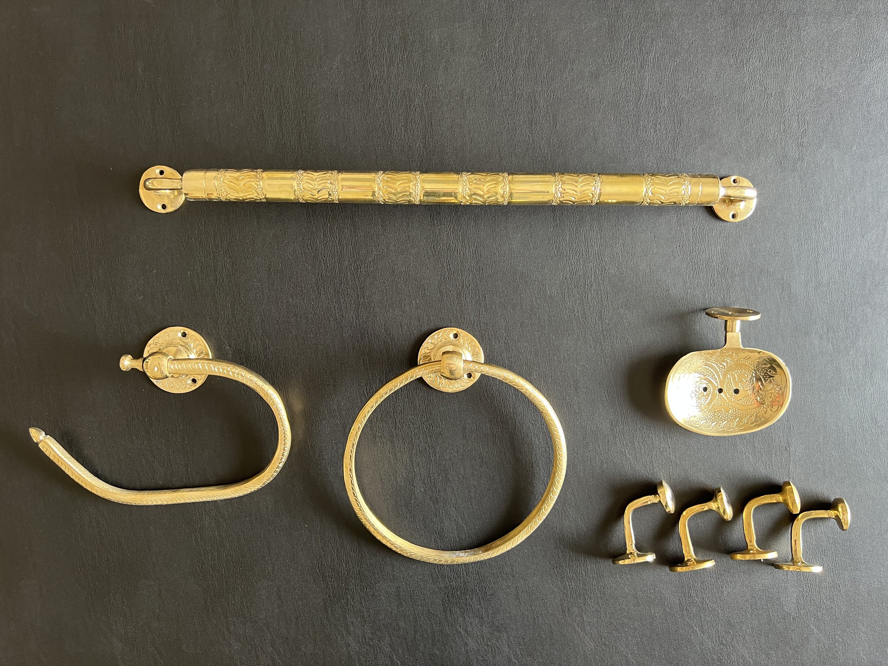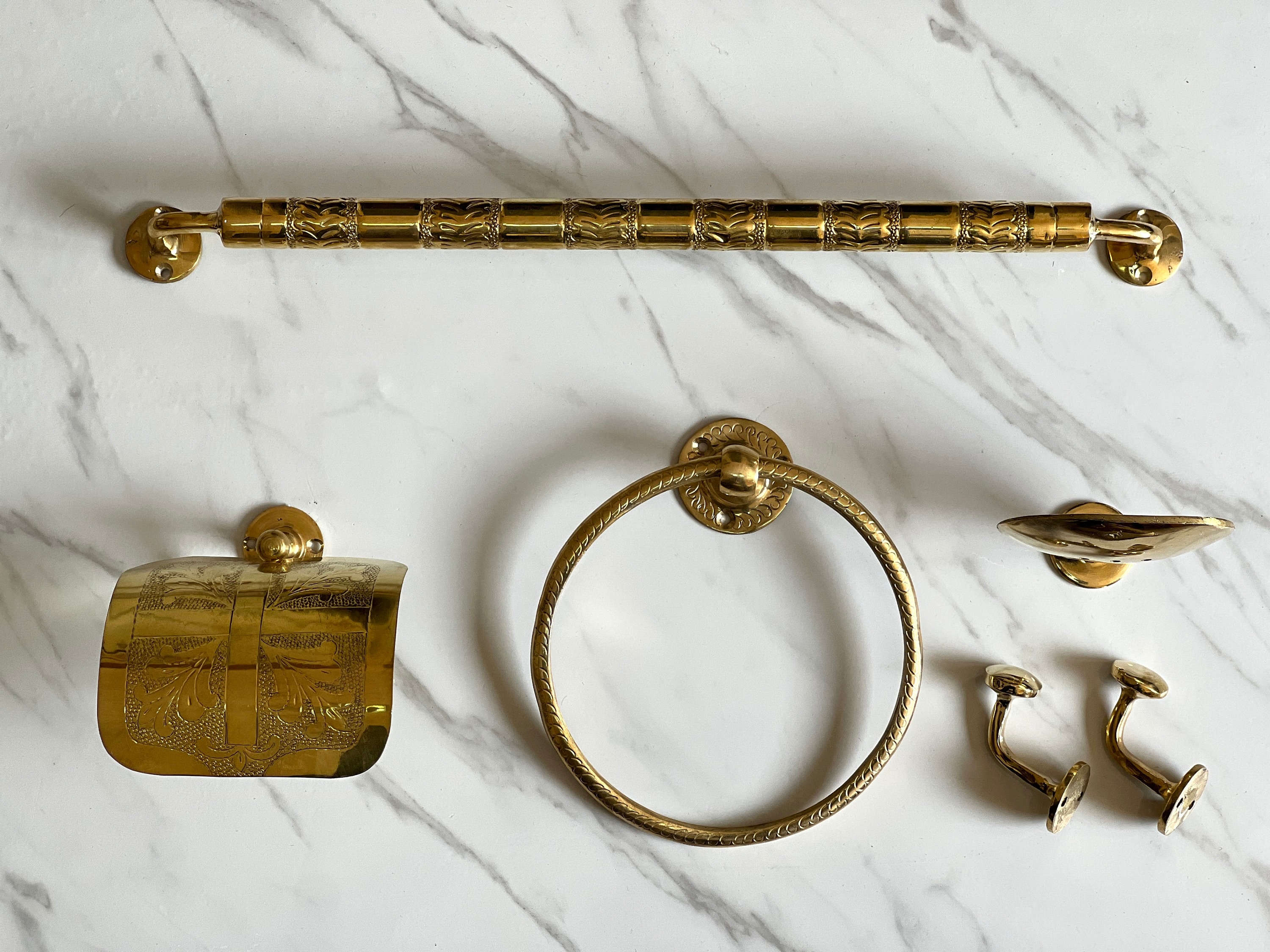 Vintage Brass Bathroom Accessories Set, Ornate Towel Bar, Towel Rin...