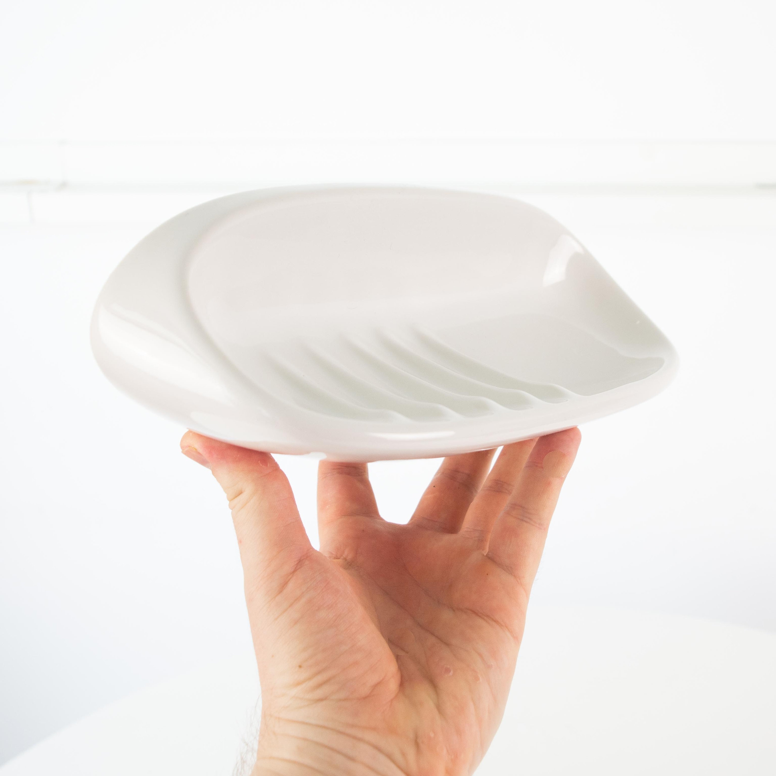 Vintage White Porcelain Bathroom Set: Soap Dish and Towel Hooks