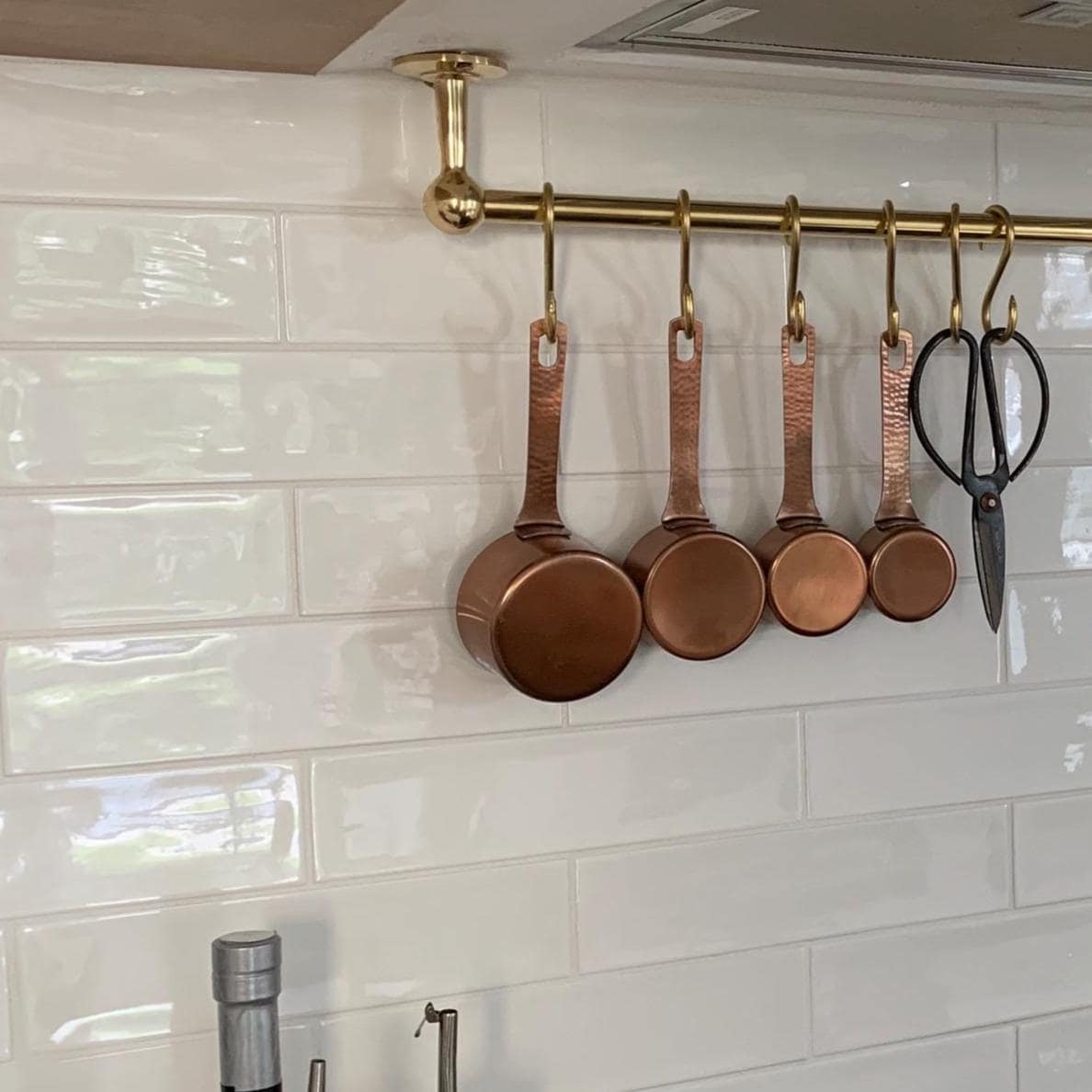 "Upgrade your kitchen with our Unlacquered Antique Brass Pot Rail, handcrafted from 100% Solid ...