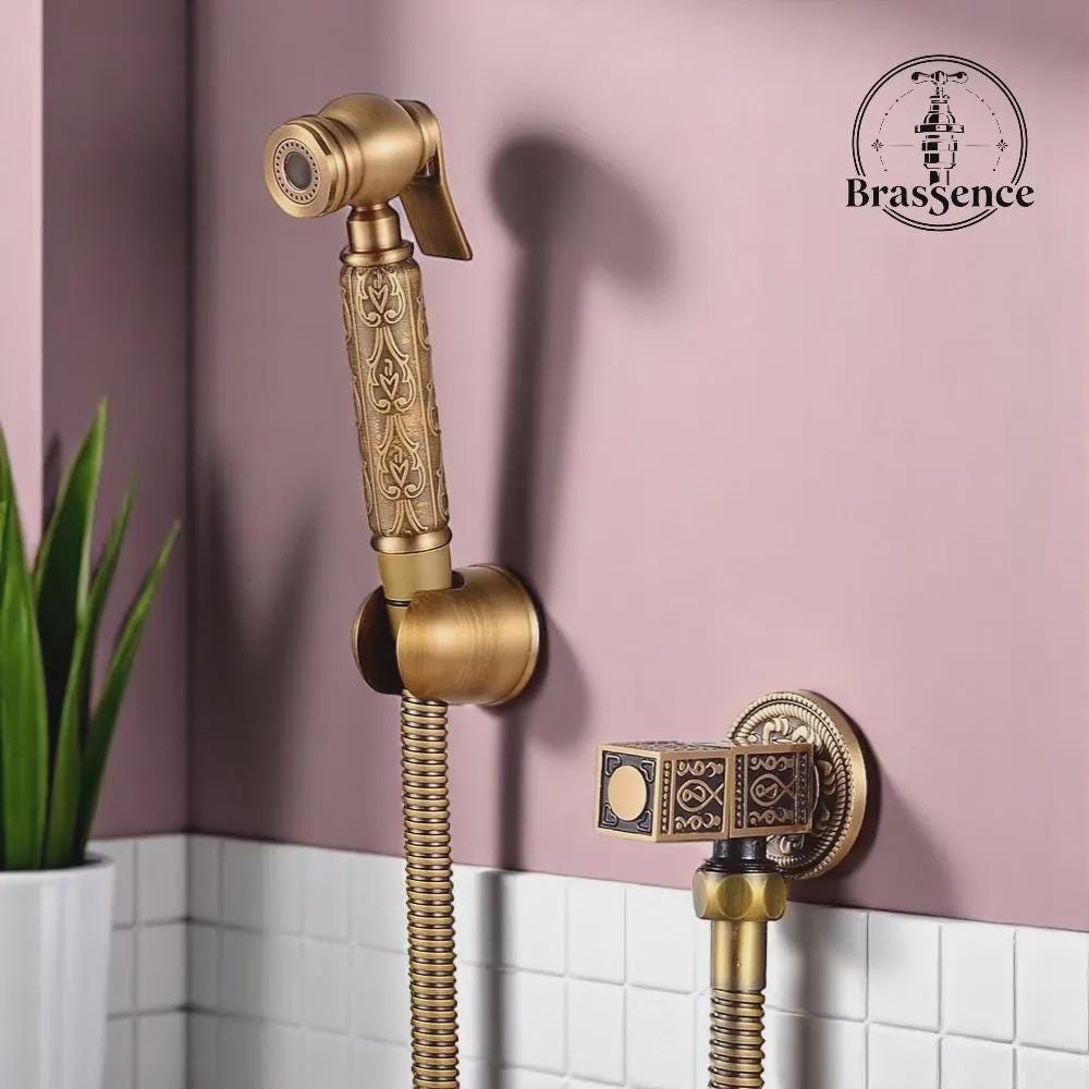 Antique Brass Bidet Sprayer Set: Handheld Carved Shattaf with Coppe...