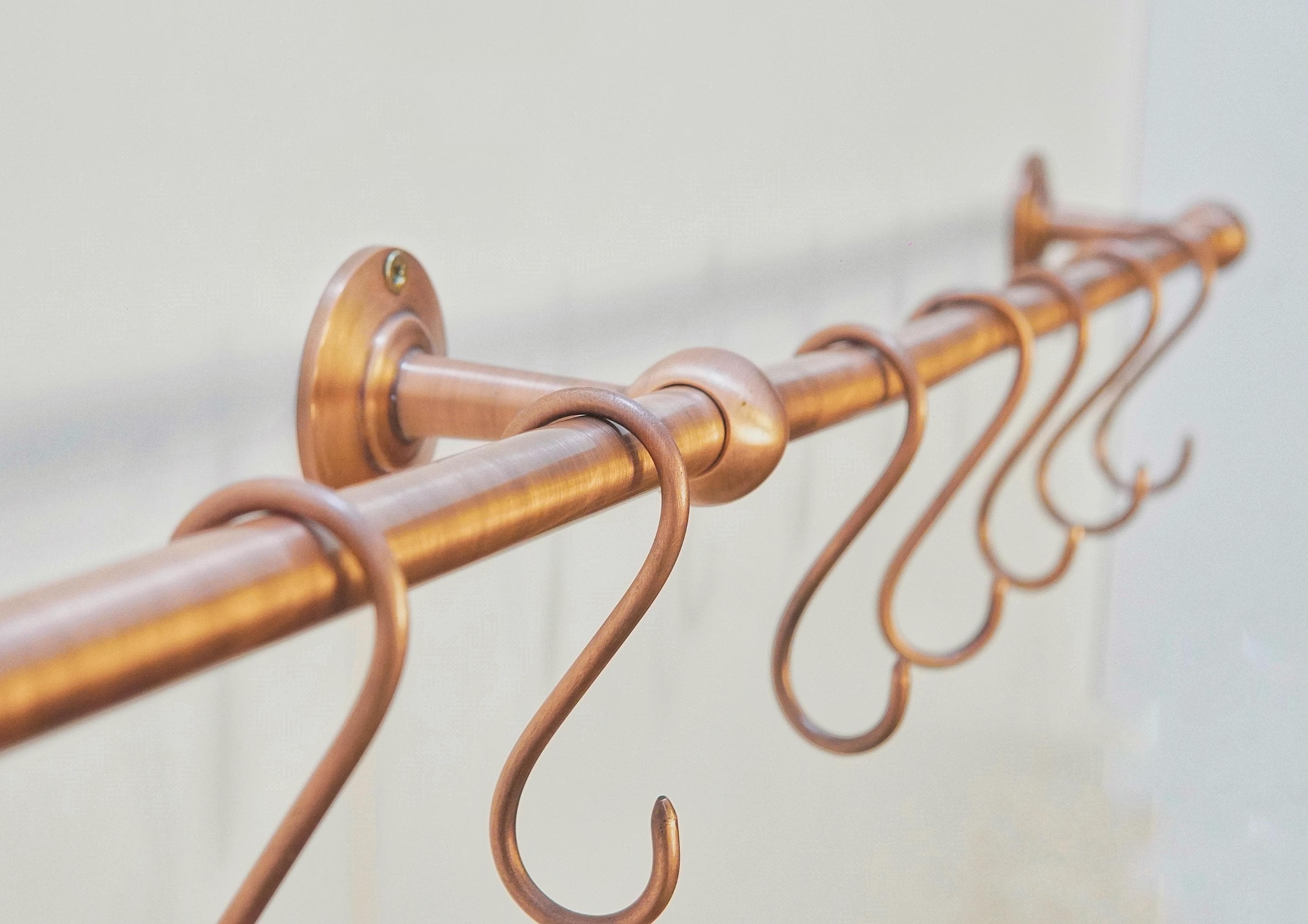 Antique Copper Pot Rail with Solid Brass S Hooks