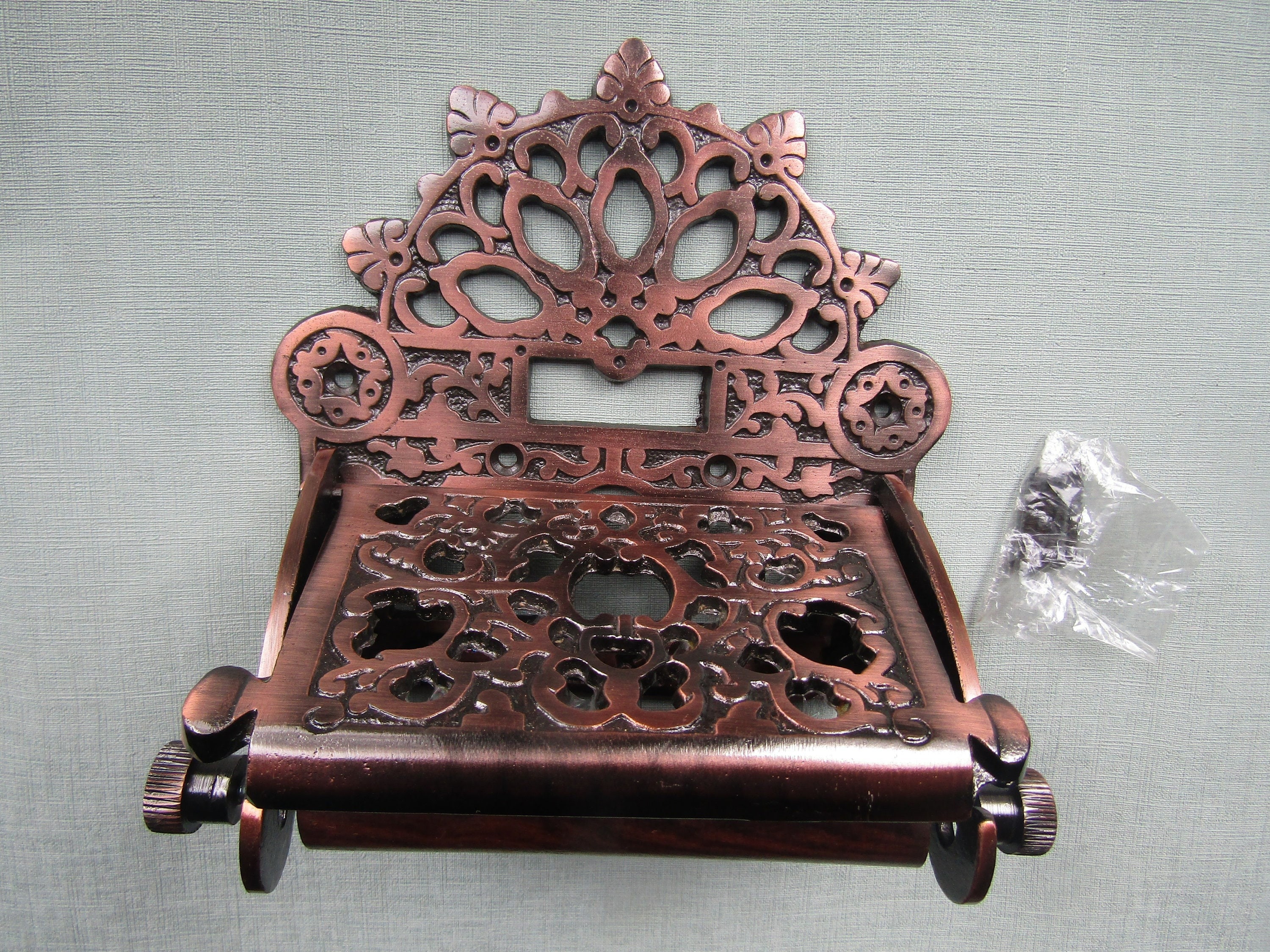 A FANTASTIC REPRODUCTION EDWARDIAN TOILET ROLL HOLDER Antique copper finish MADE FROM CAST IRON WITH...