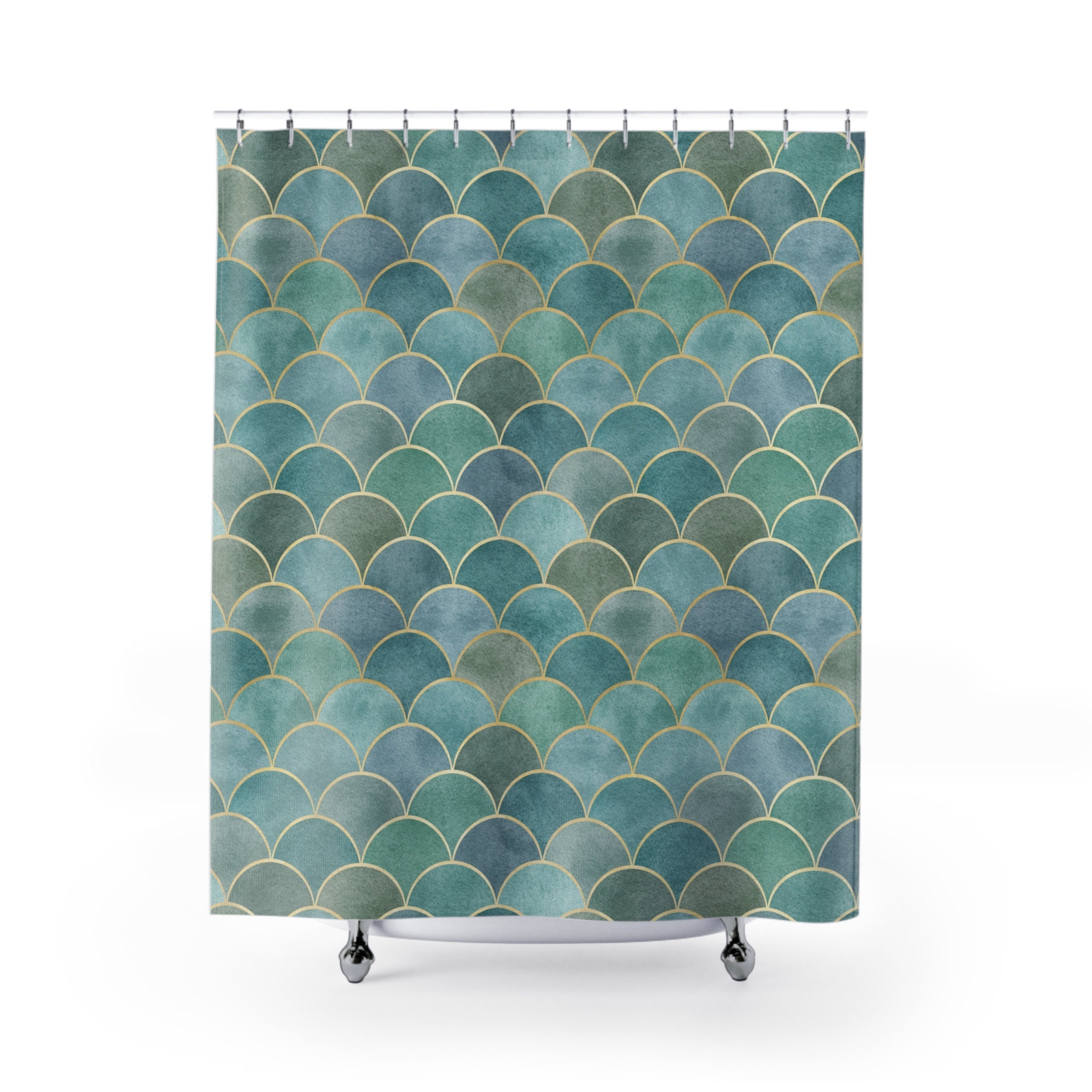 Art Deco Shower Curtain | Aqua Blue Turquoise & Gold Scalloped ...