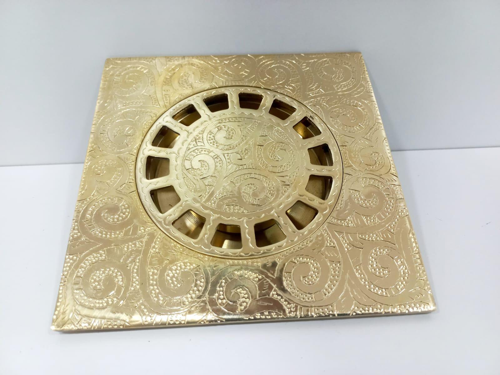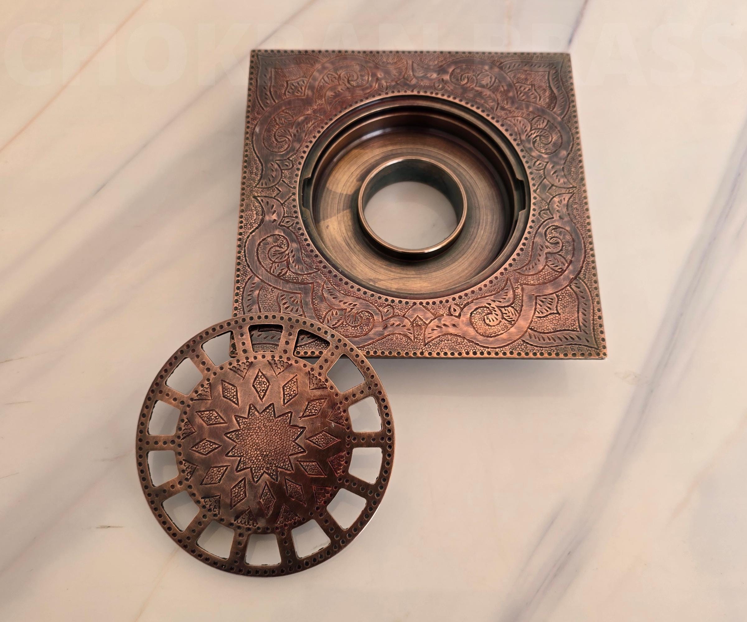 Antique Engraved Copper Square Floor Drain, Handmade Shower Floor D...