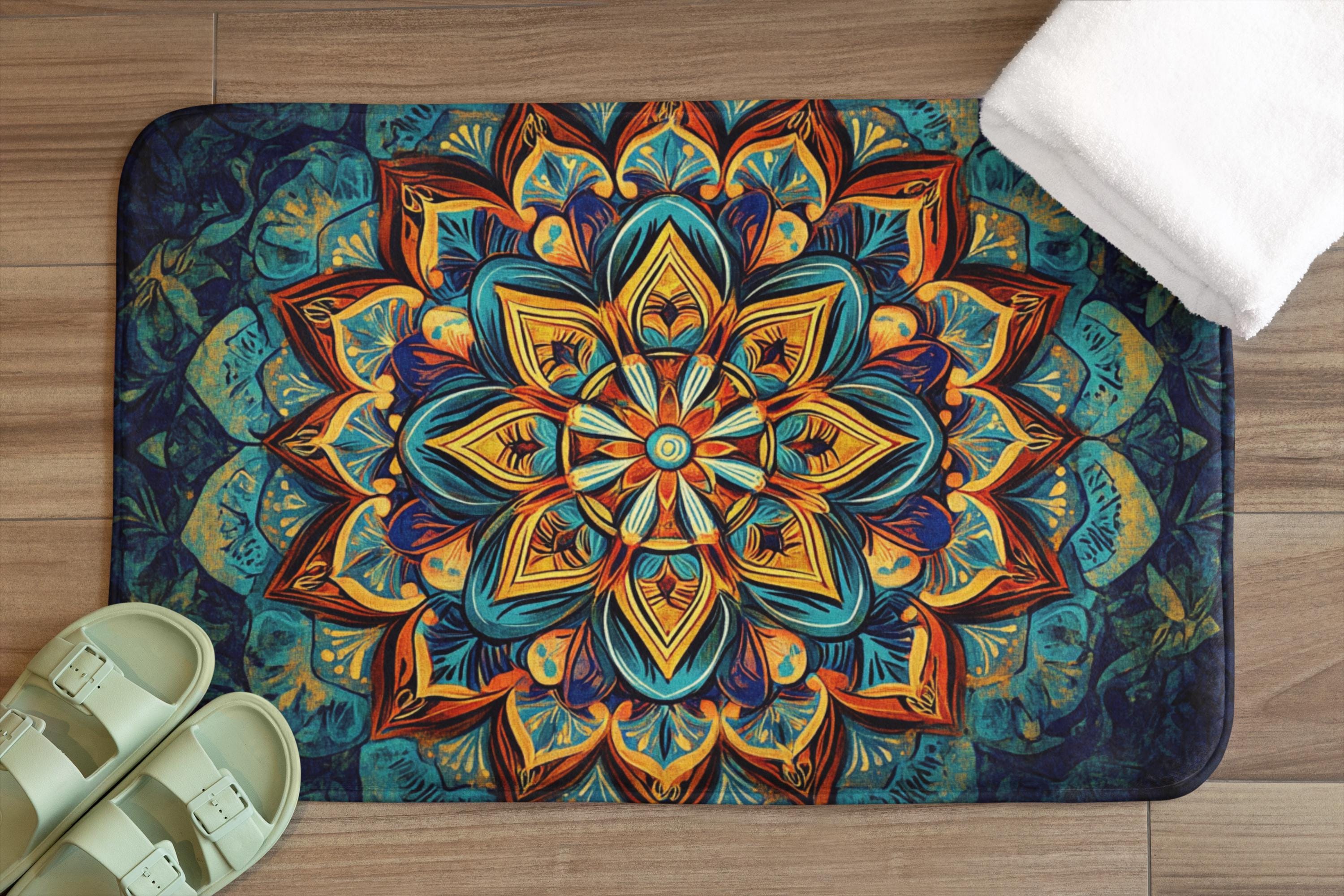 Mandala Bath Mat, Boho Bathroom Decor, Colorful Spiritual Rug, Soft...