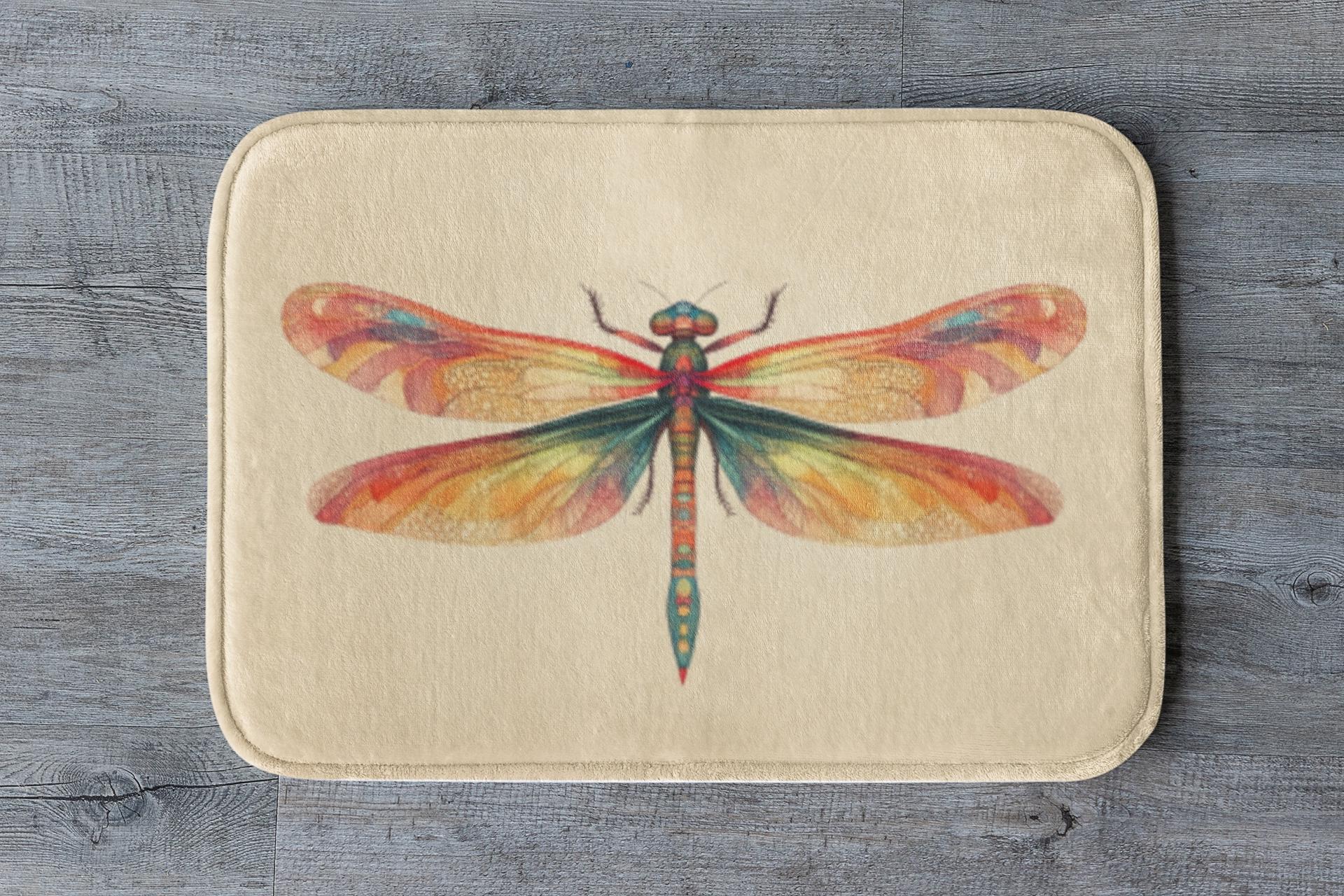 Colorful Dragonfly Bath Mat, Rainbow Insect Bathroom Rug, Boho Natu...