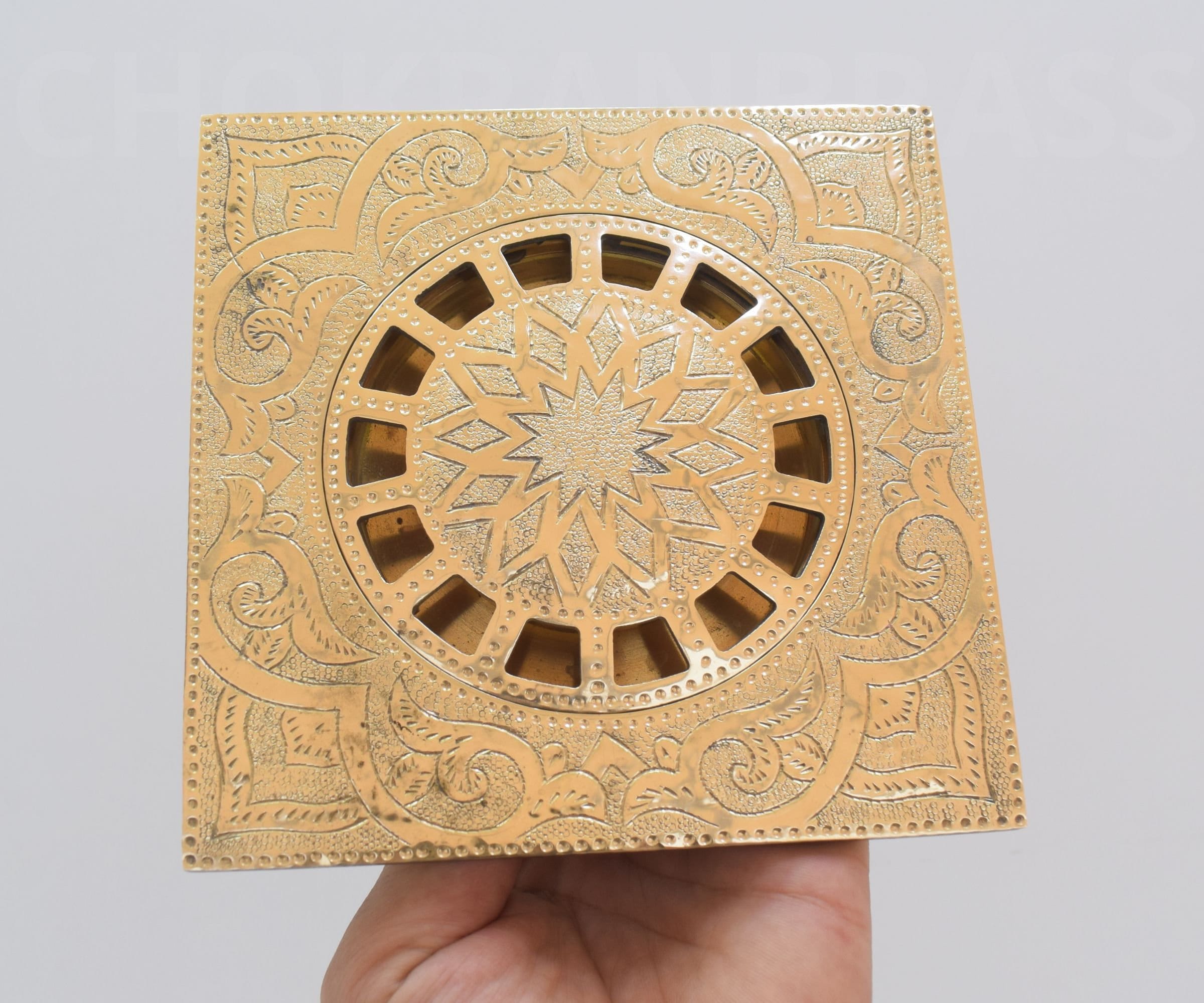 Antique Engraved Copper Square Floor Drain, Handmade Shower Floor D...