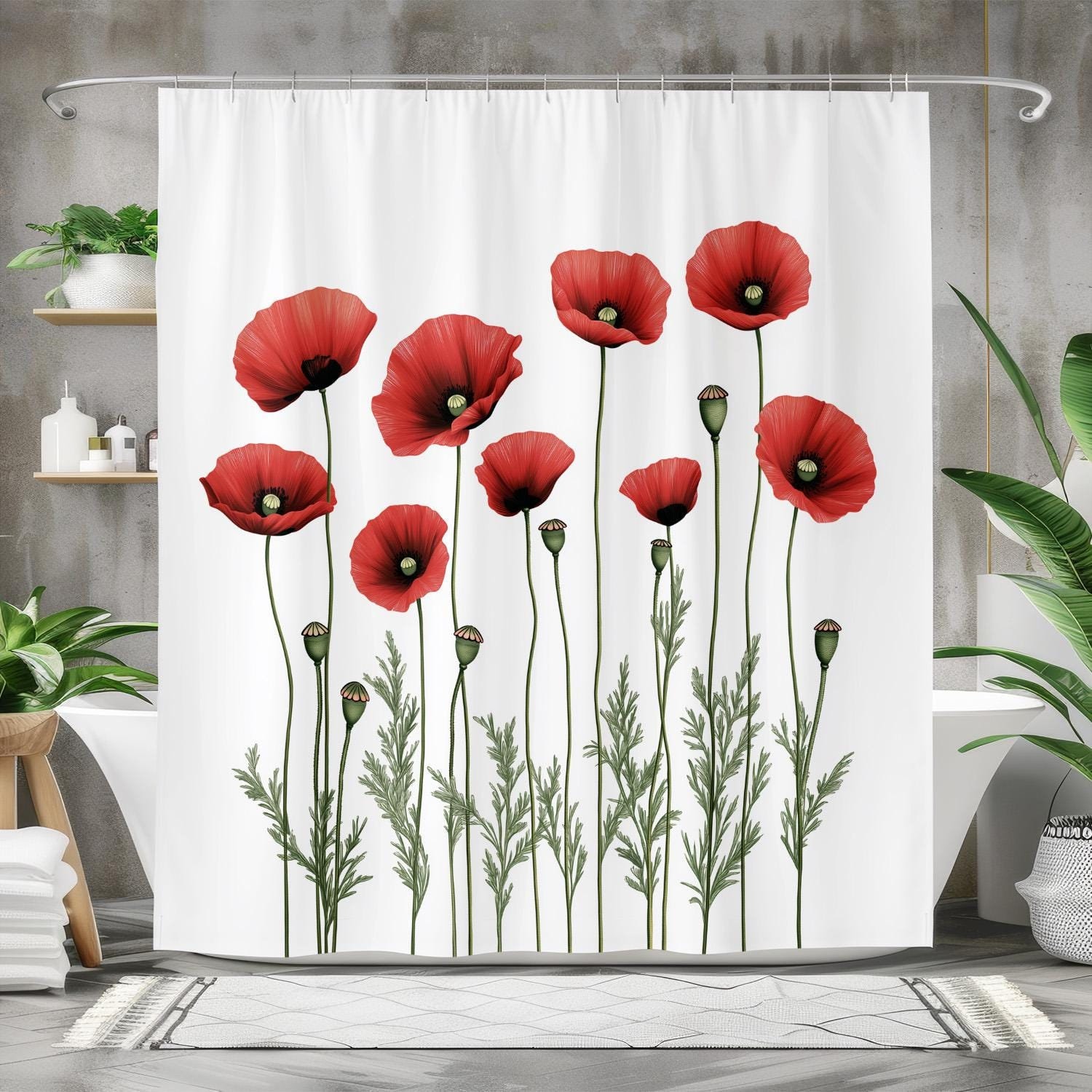 Red Poppy Shower Curtain, Floral Bathroom Decor, Botanical Bath Cur...
