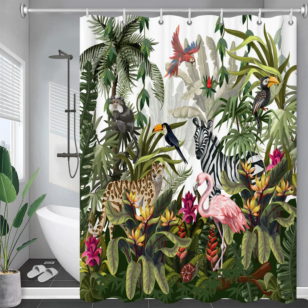 Tropical Leaves Palm Tree Bird Animals Pattern Shower Curtains Bathroom Curtain Waterproof Frabic Ba...