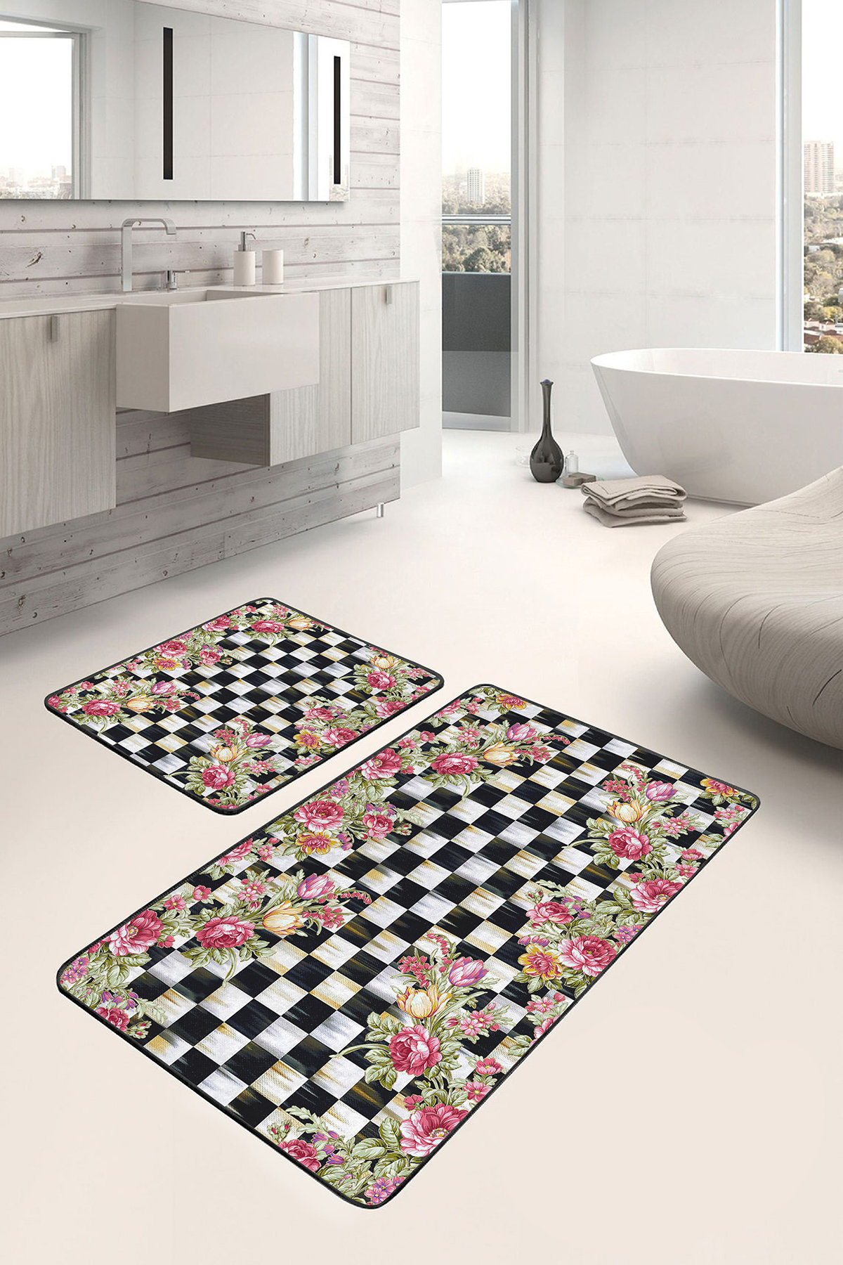 Floral Bath Mat|Checkered Bath Mat|Anti-Slip Kitchen Mat|Black And ...