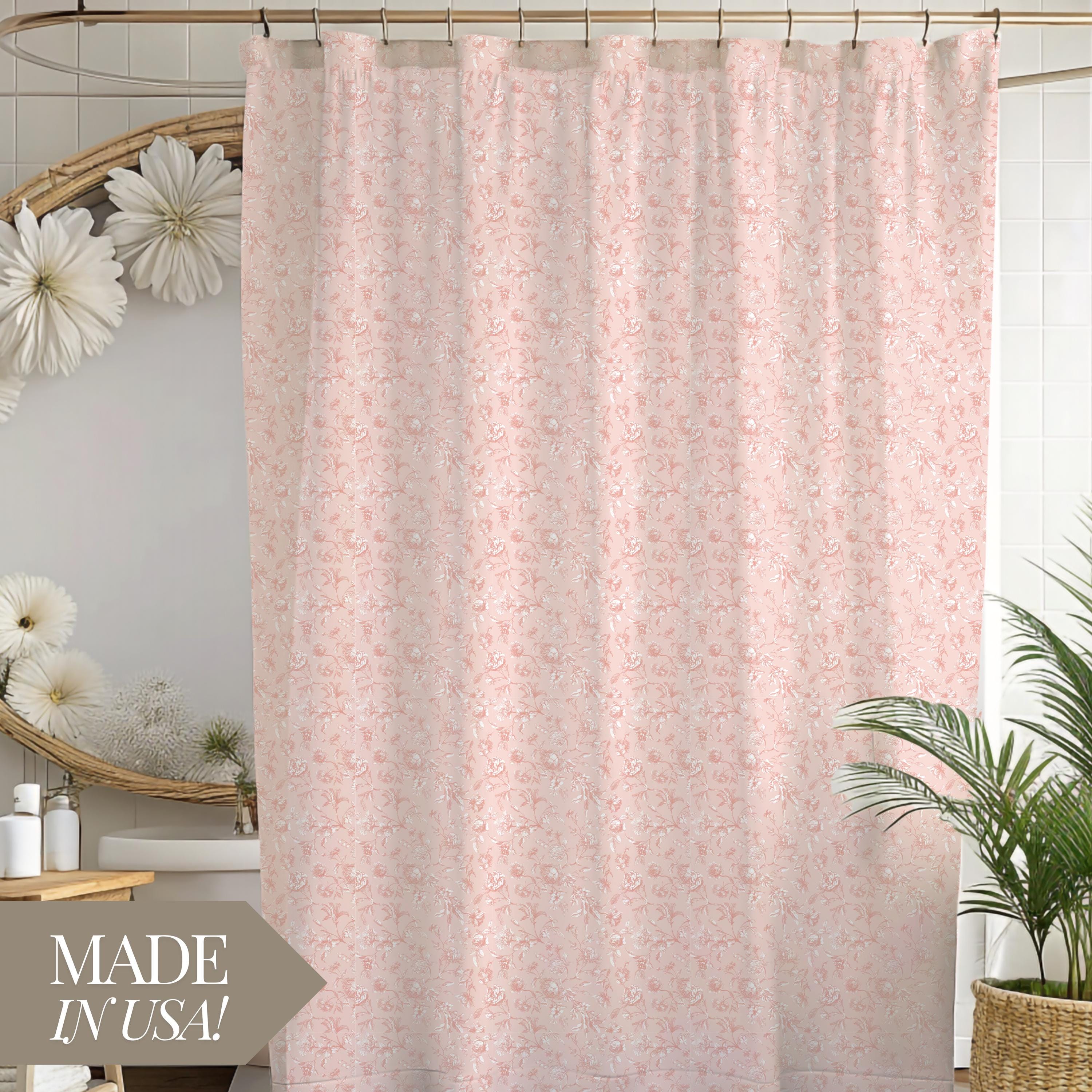 Pink Shower Curtain Flower Toile Bathroom Decor For Teen Girl Flora...