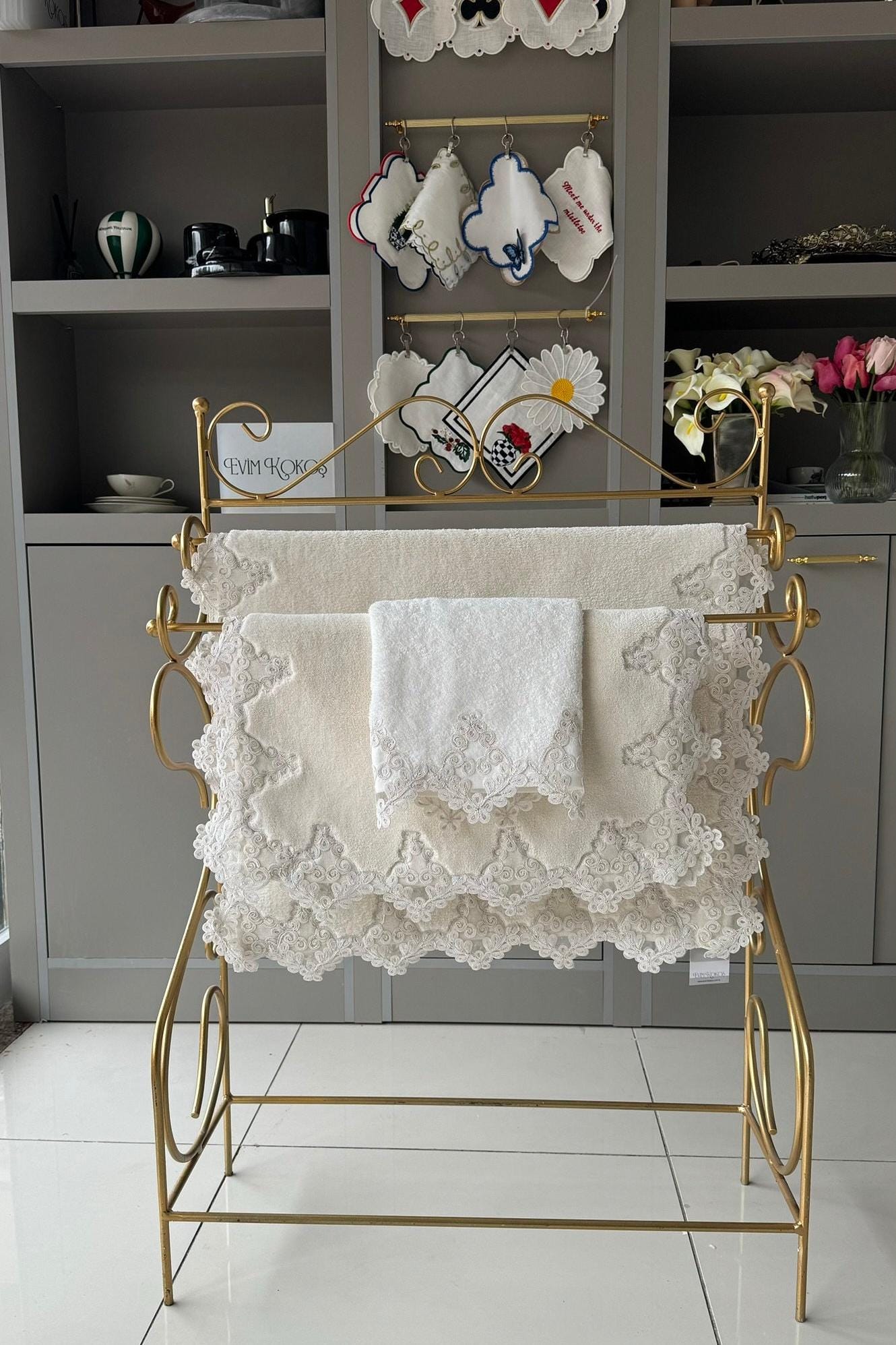 "Elevate Your Bathroom with an Elegant Lace Bath Set! Transform your bathroom into a luxurious ...