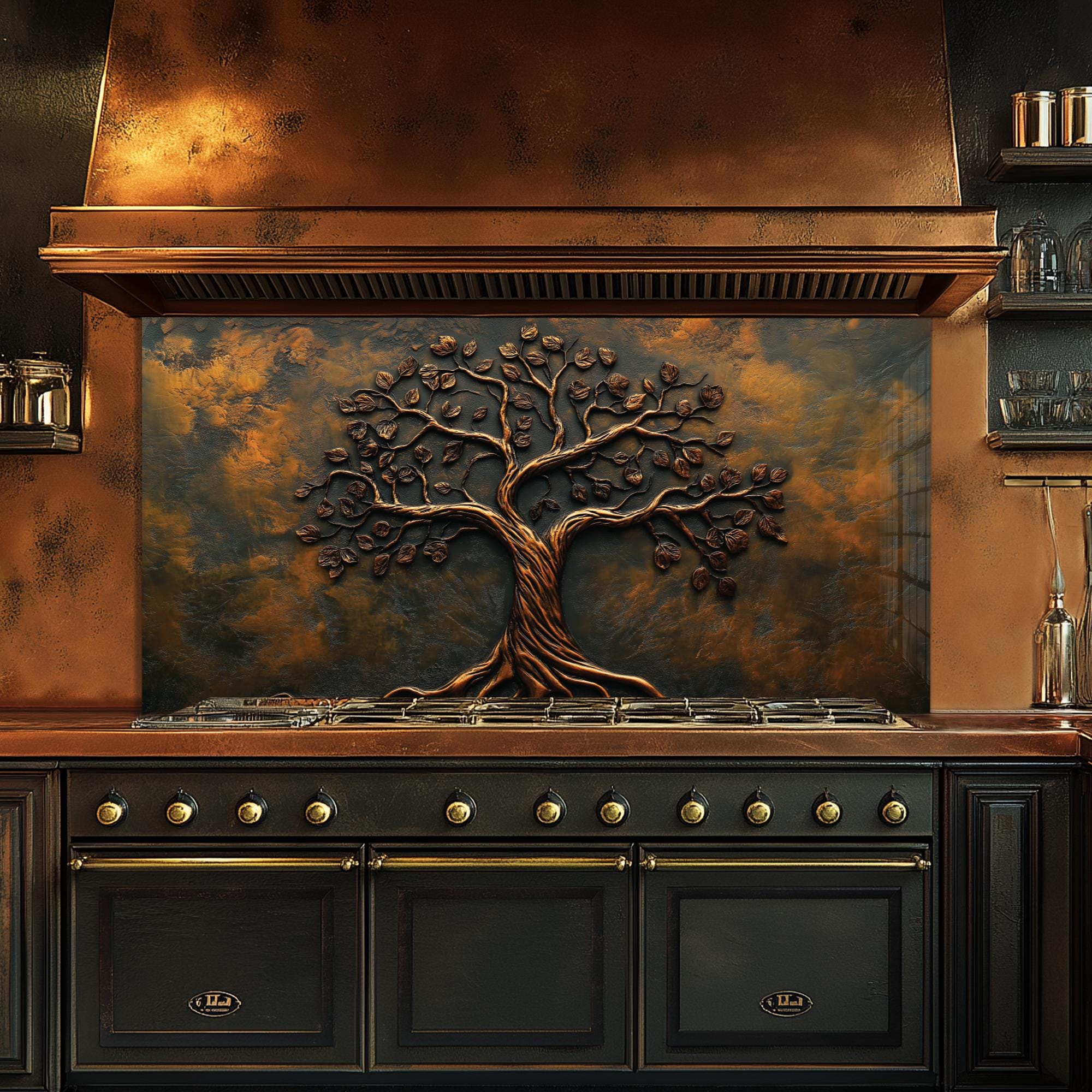 "Copper Look Tree of Life tempered glass kitchen backsplash is amazing decors for kitchen. Besi...