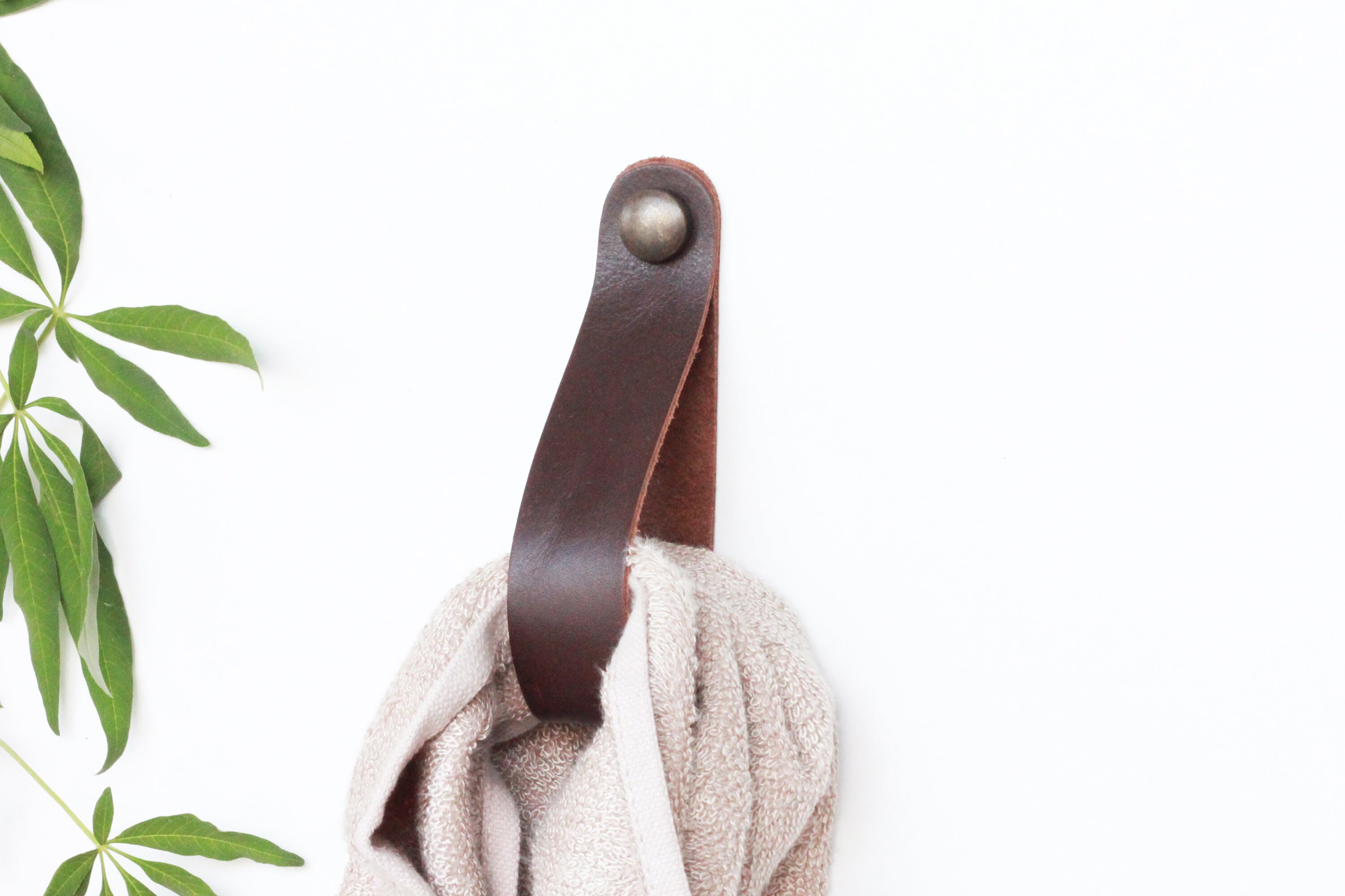Minimalist Leather Towel Hanger Strap, Wall Hanging Towel Holder, B...