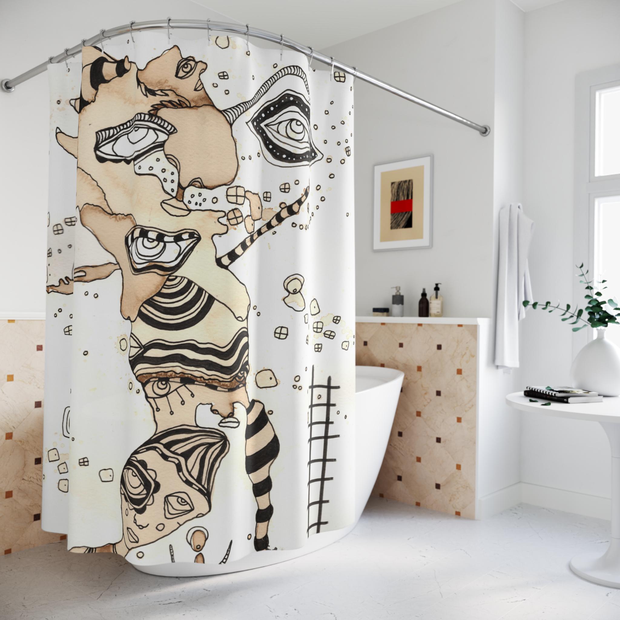 Shower Curtains Coffee Stained Abstract Art Painted Designer Bathro...