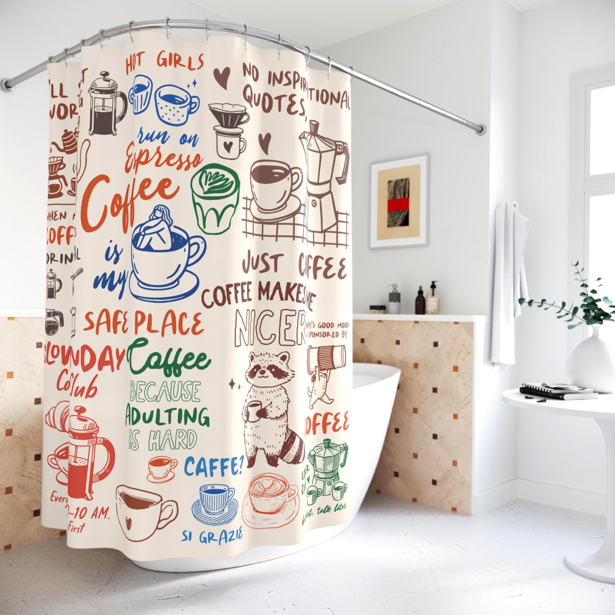 Retro Coffee Hand Drawn Doodle Shower Curtain Brunch Shower Curtain...