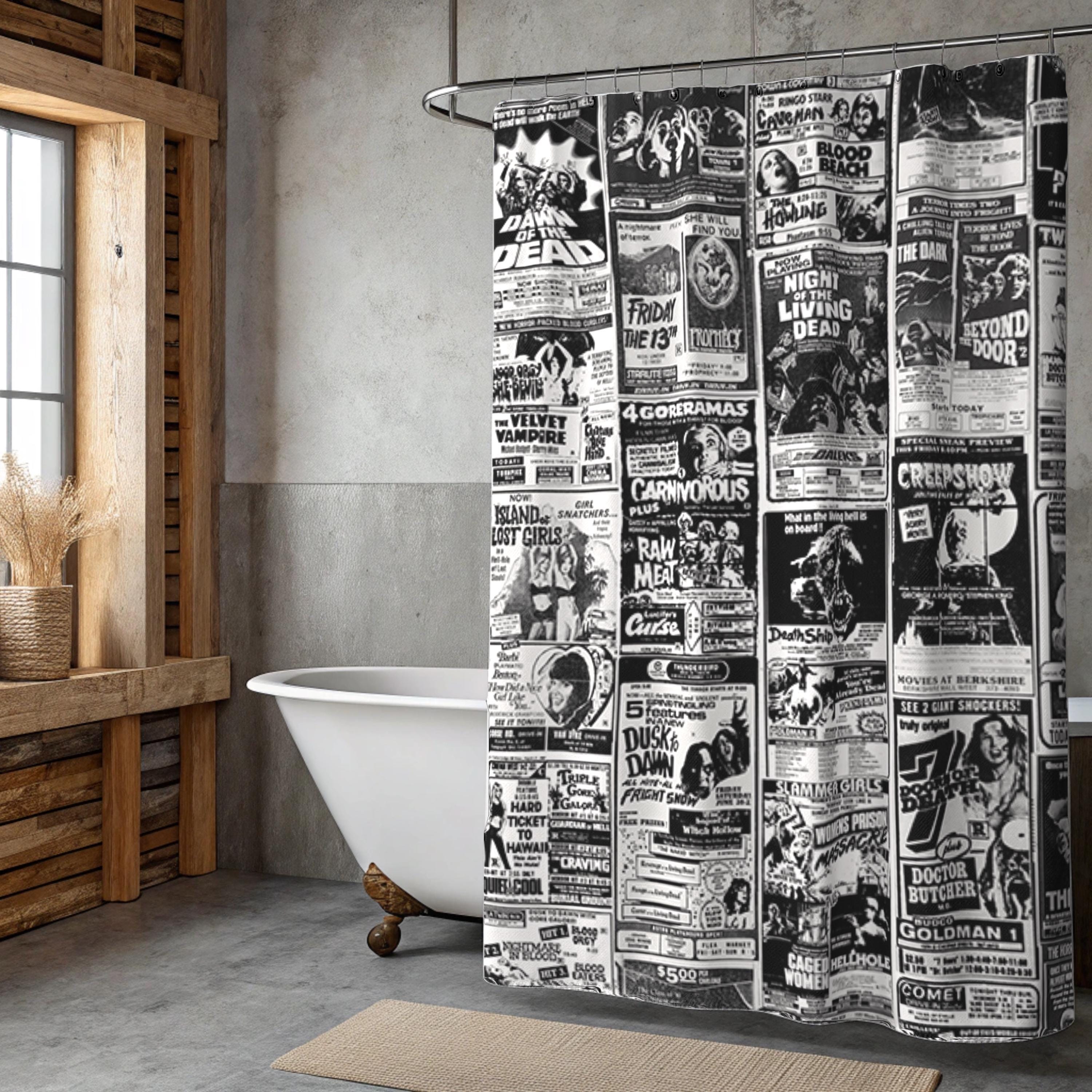 Horror Movie Shower Curtain: 70s-80s Retro Film Ad Bathroom Decor