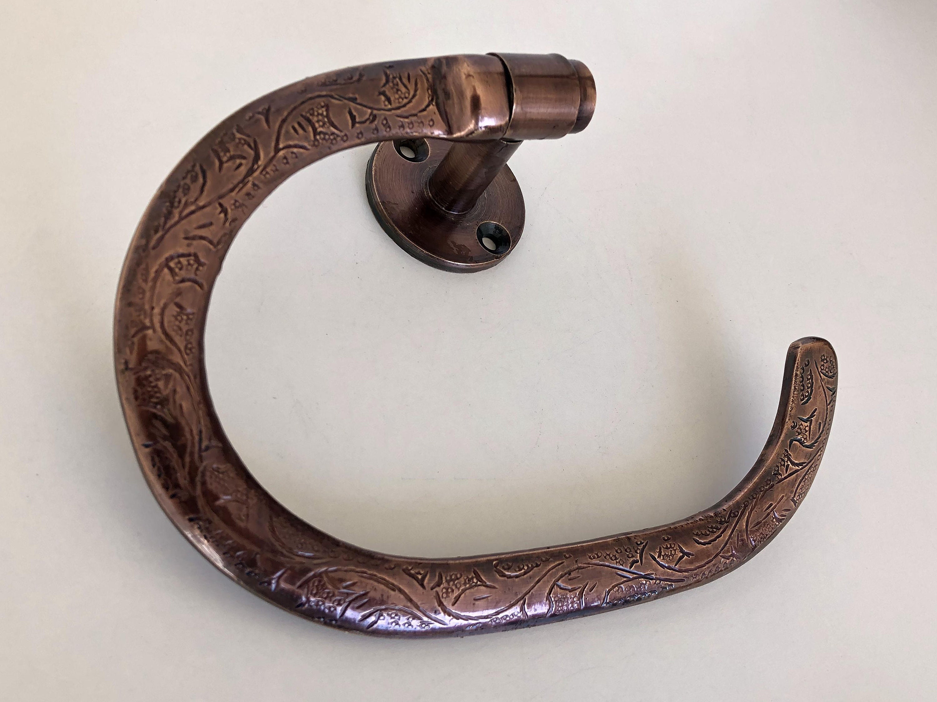 Copper Towel Holder For Bathroom Wall , Engraved Towel Holder Ring,...