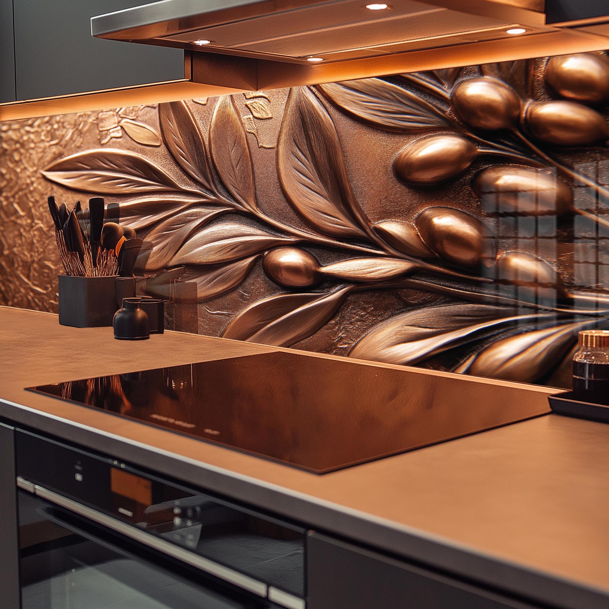 Copper Leaf Glass Backsplash, Tempered Glass Splashback, Stove Back...