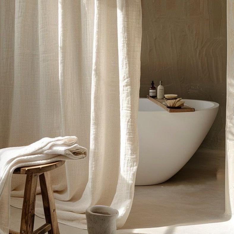 Linen Shower Curtain, Linen Shower Curtain, Washed Linen Drapes, Ba...