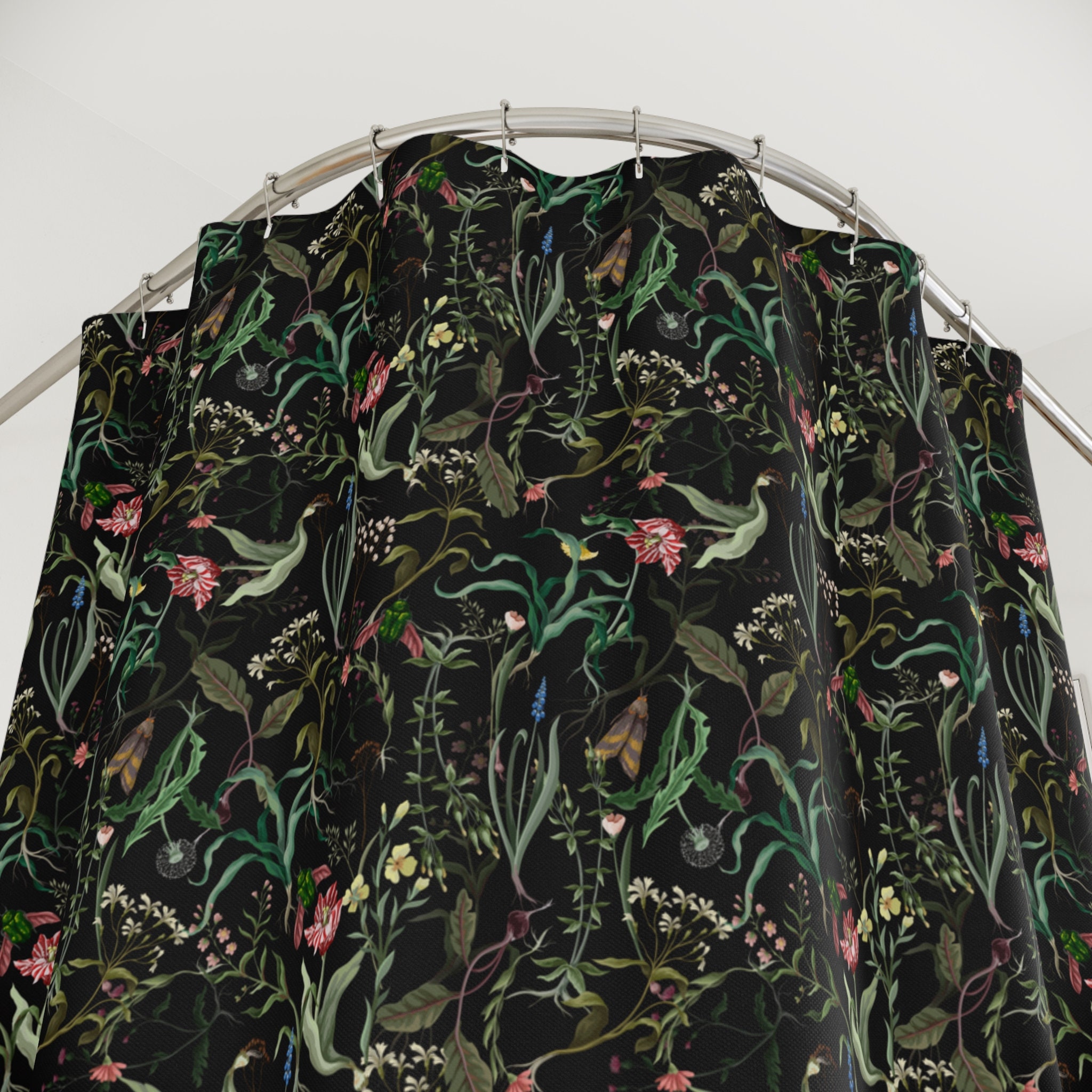 Dark Moody Floral Shower Curtain & Bath Mat, Dark Nature Floral...