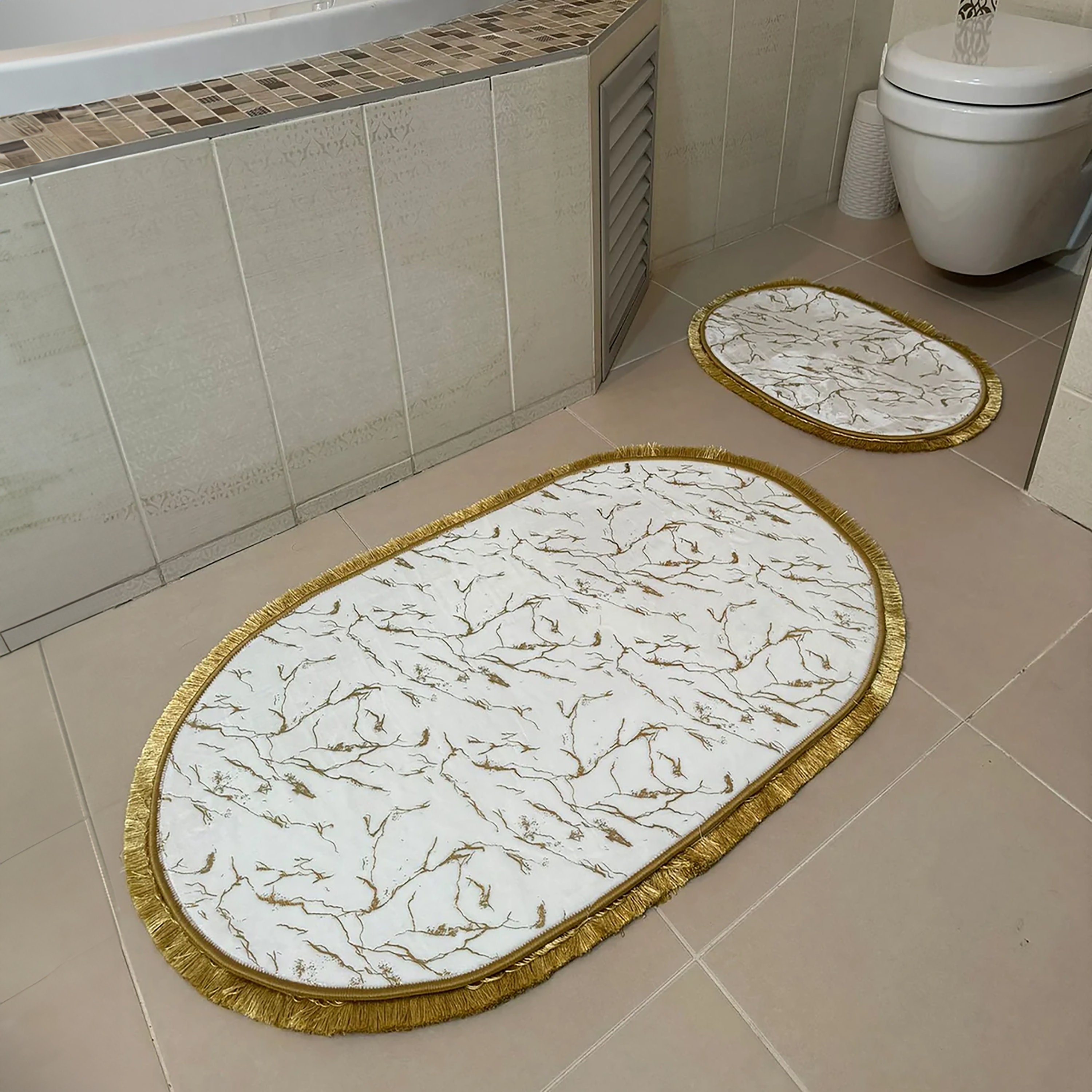 2-Pack Gold Bath Mat Set, 2-Piece Mat Set,Toilet Bowl Set, Decorati...