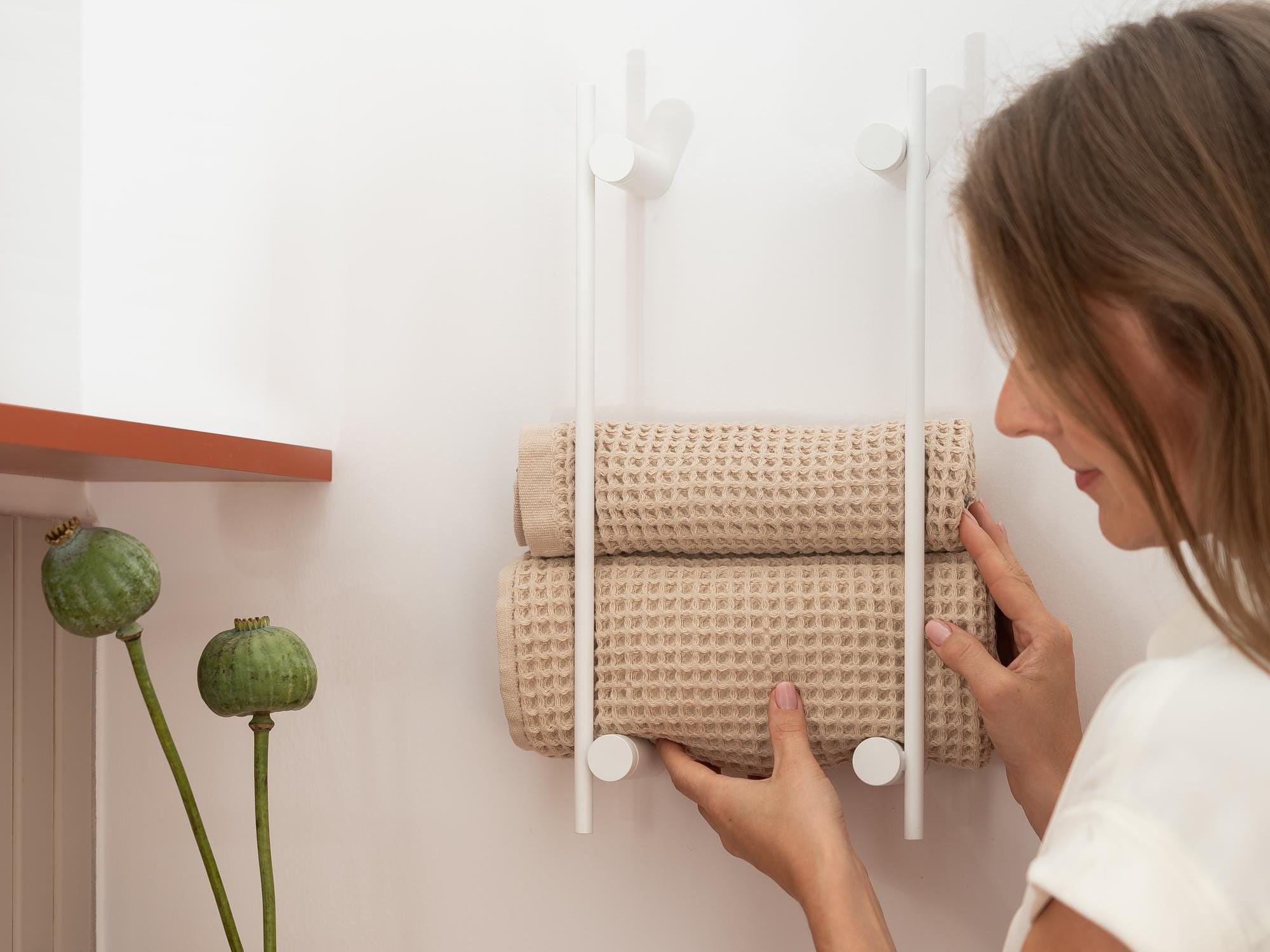 Industrial Wall Mounted Towel Holder, White towel shelf, Bathroom o...