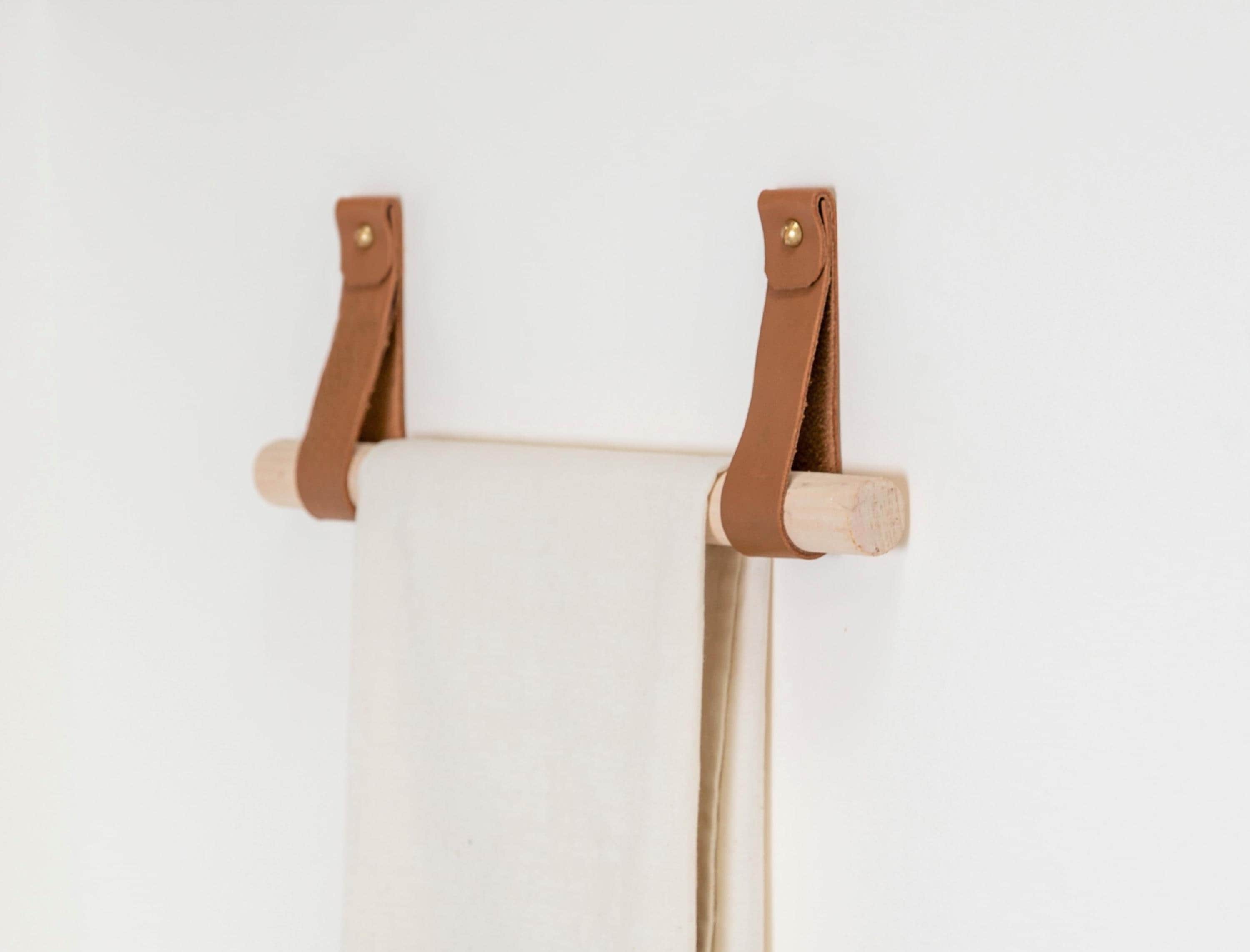 Medium Minimalist Leather Strap Hanger bathroom towel holder leathe...