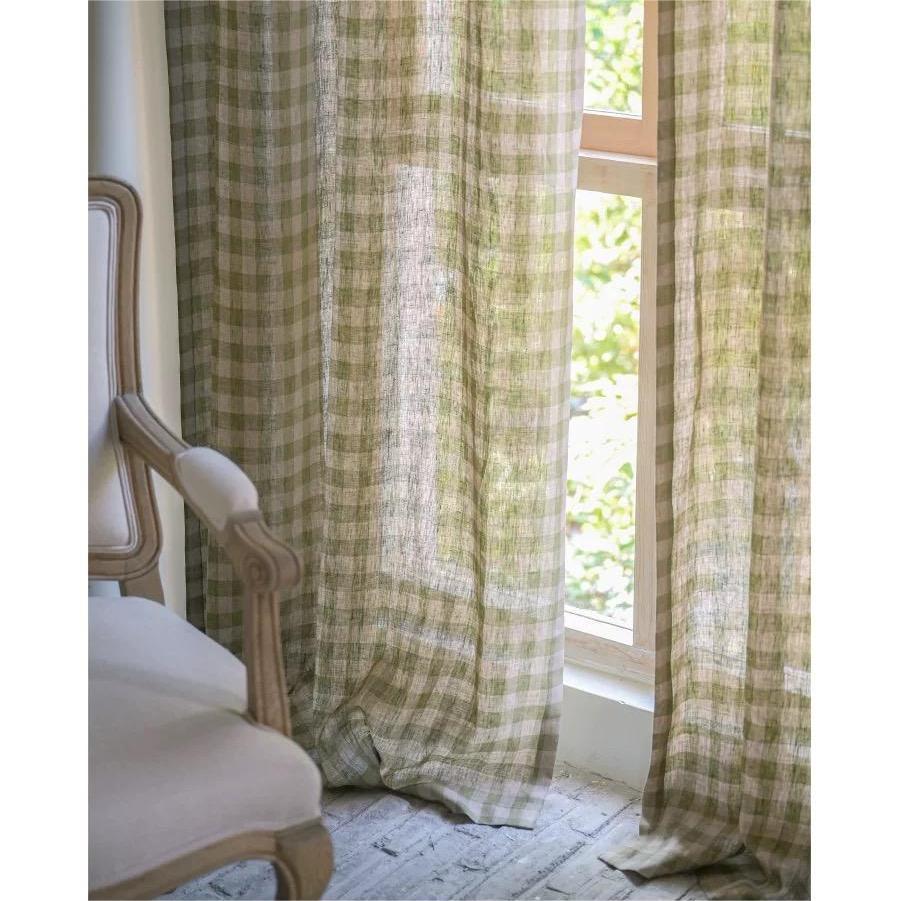 Green Linen Drapery l Green sheer curtains l Natural Linen Panel | ...