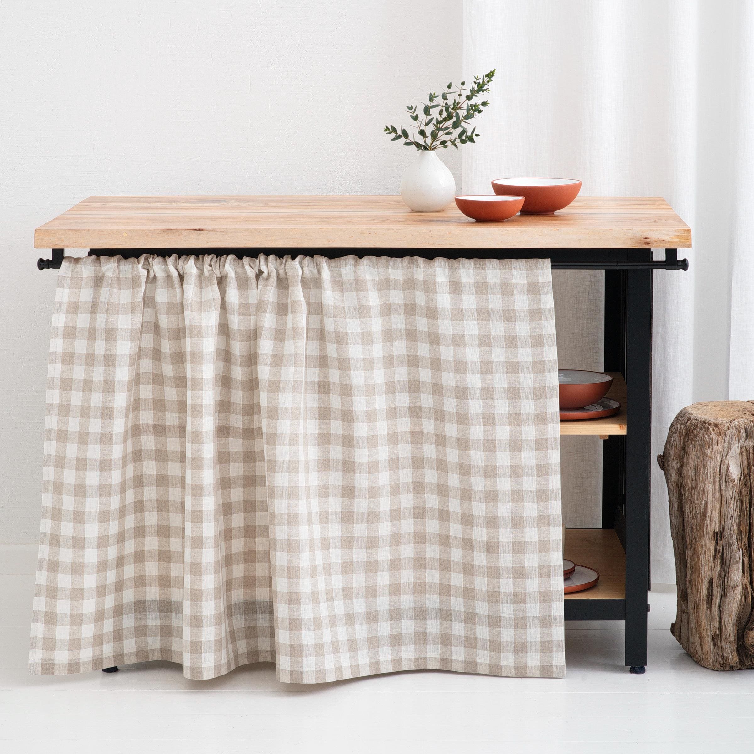 Linen Sink Skirt with Rod Pocket - Kitchen Under Sink Curtain, Fren...