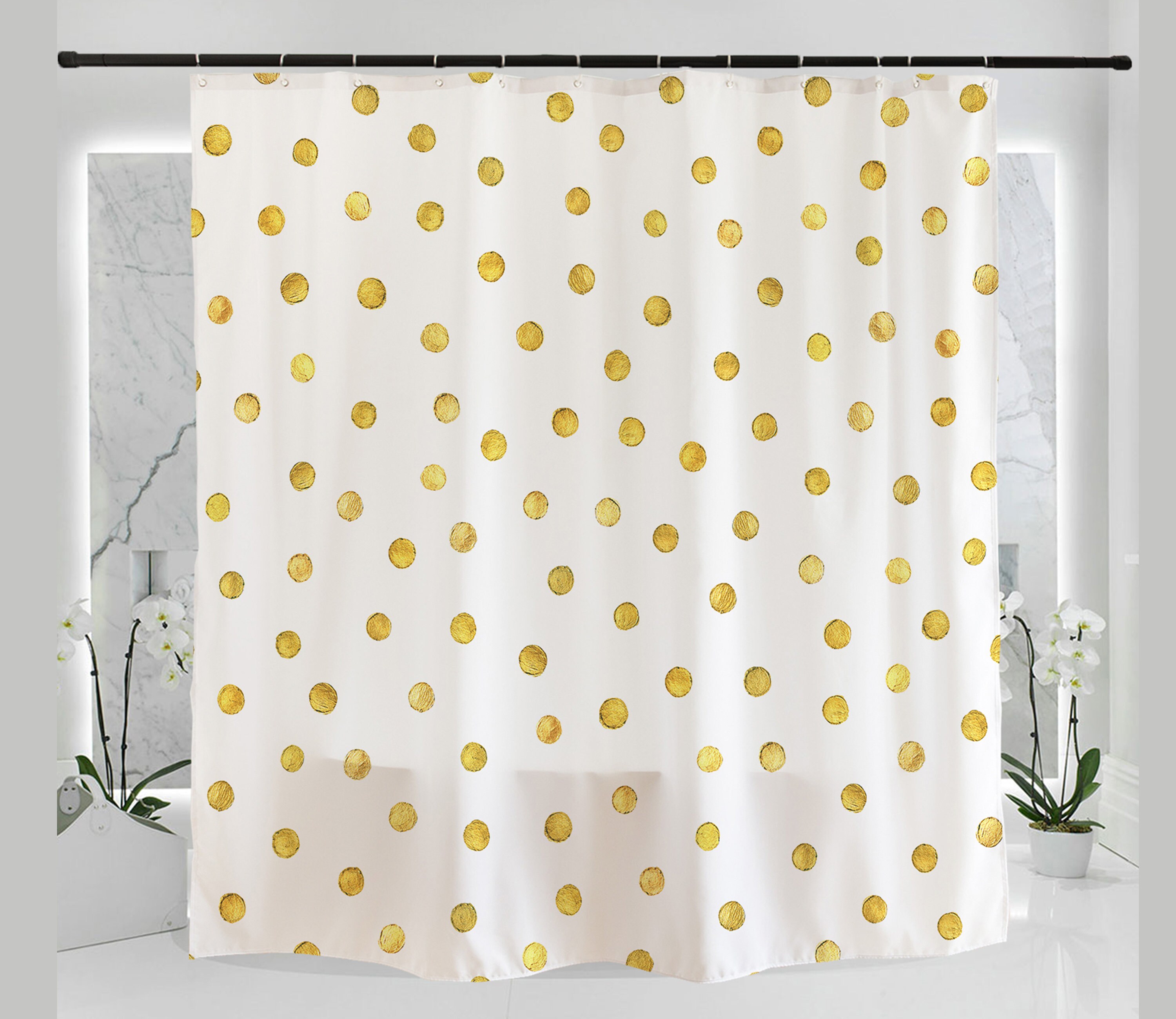 Gold Dots Shower Curtain, Waterproof Washable 180*180cm with Hooks,...