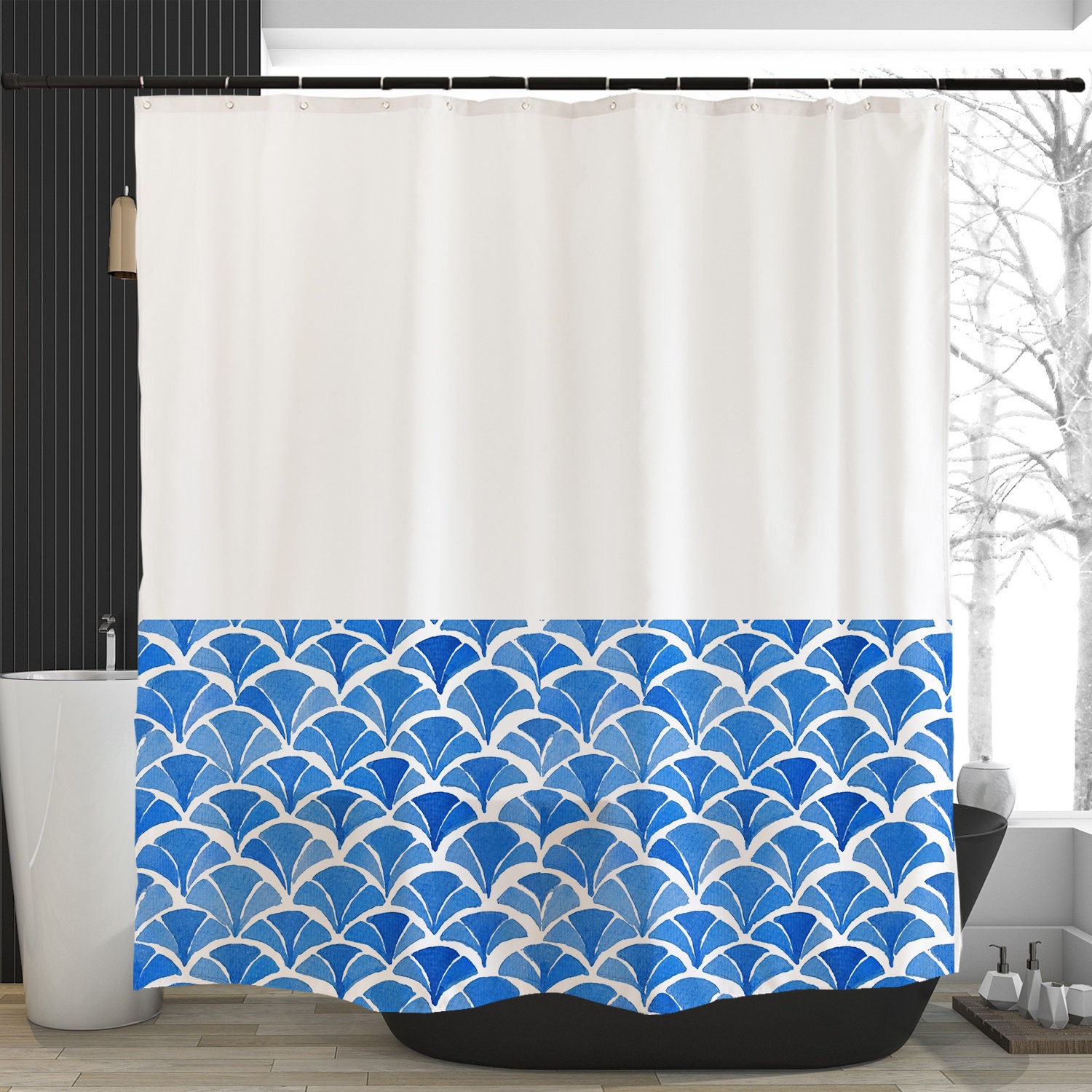 Japanese Blue Pattern Shower Curtain, Waterproof Washable 180*180cm...