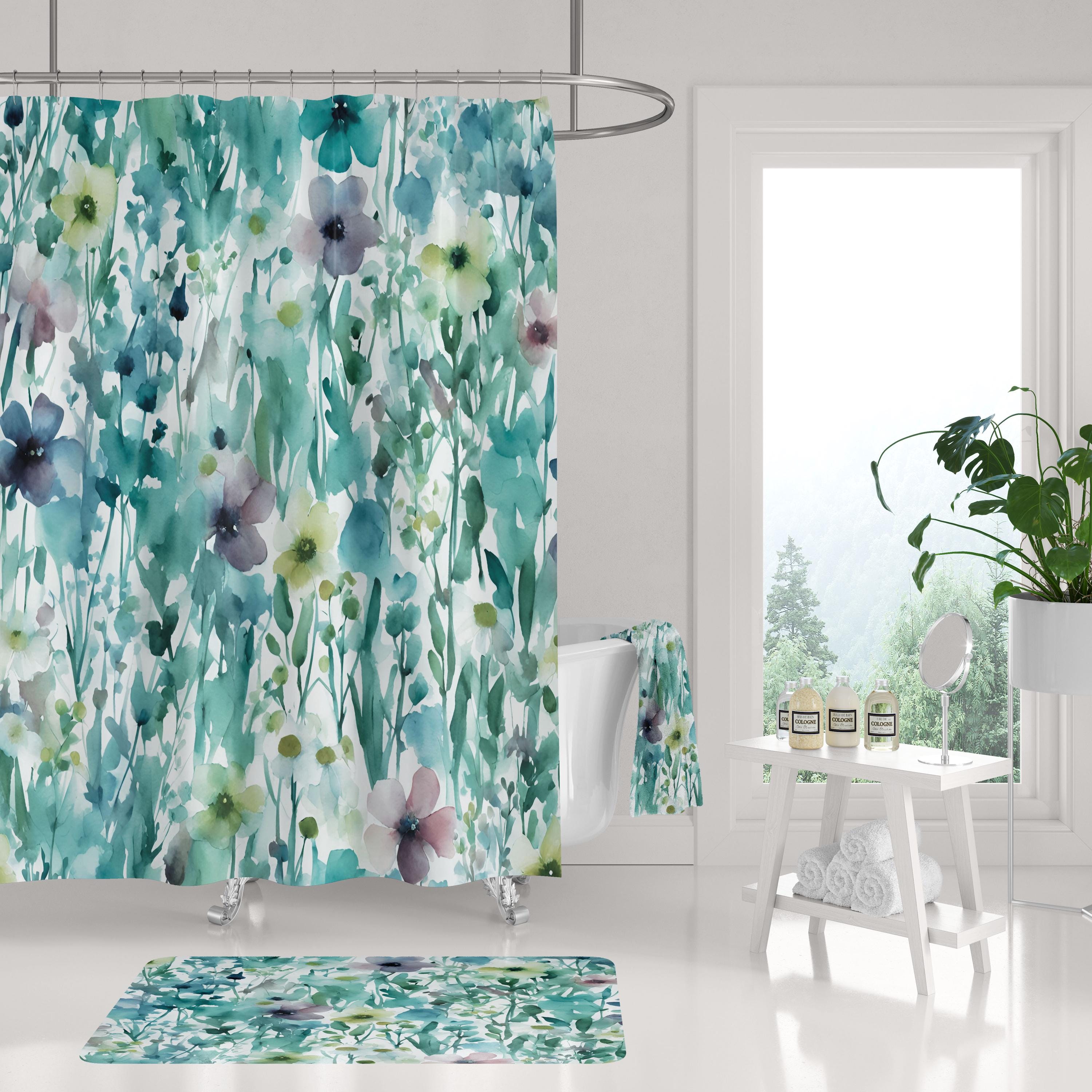 Boho Shower Curtain, Lavender Lilac, Forest Green Leaves, Floral Wa...