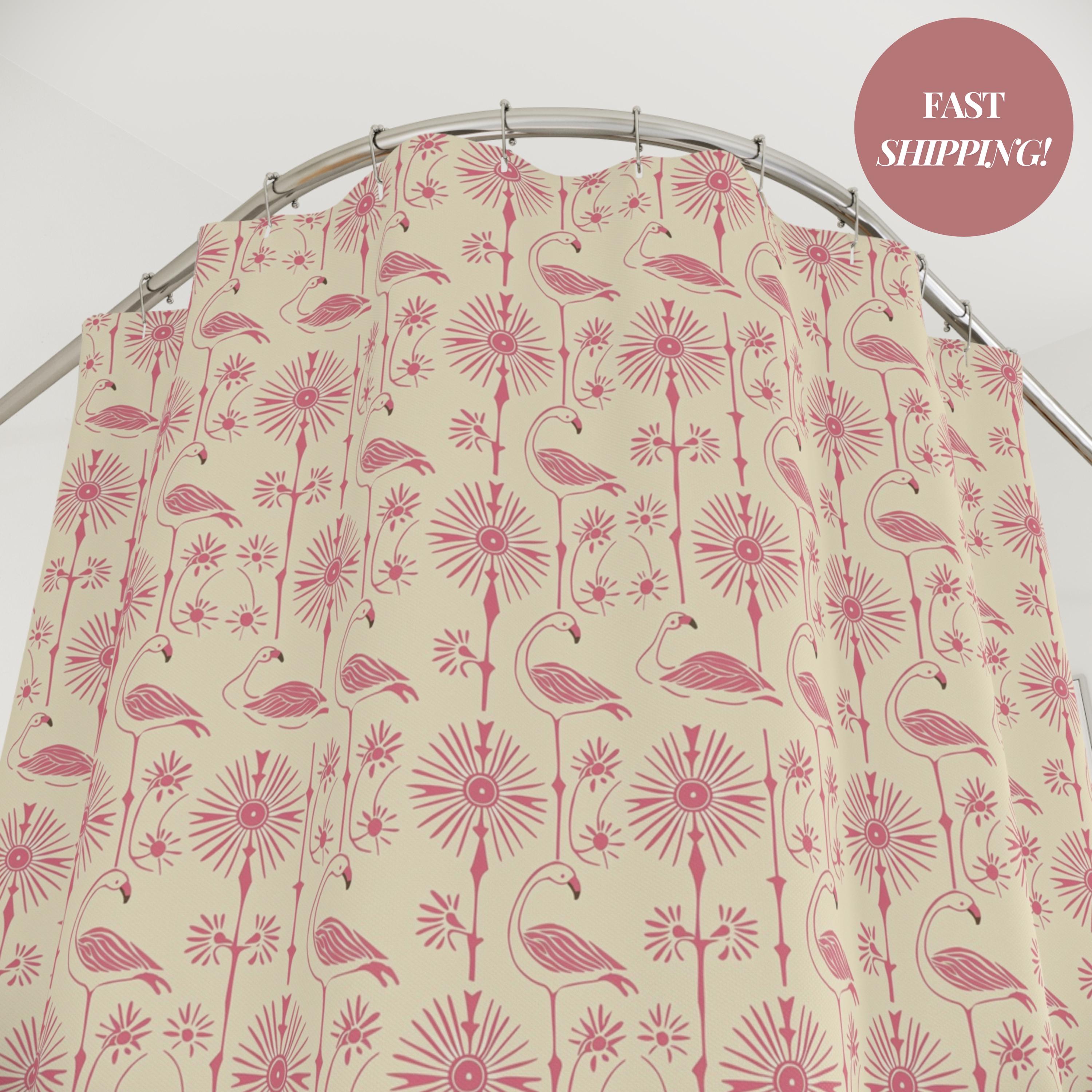 Flamingo Shower Curtain Watercolor Tropical Bathroom Decor Pink Bir...