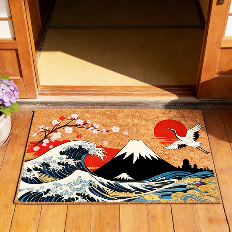 Ocean Wave Doormat - Bring the Calm of the Coast Home Step into serenity with this coastal sunset do...