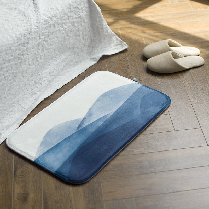 Indigo Ink Wash Memory Foam Bath Mat: Non-Slip Velvet Rug (16x24-In...