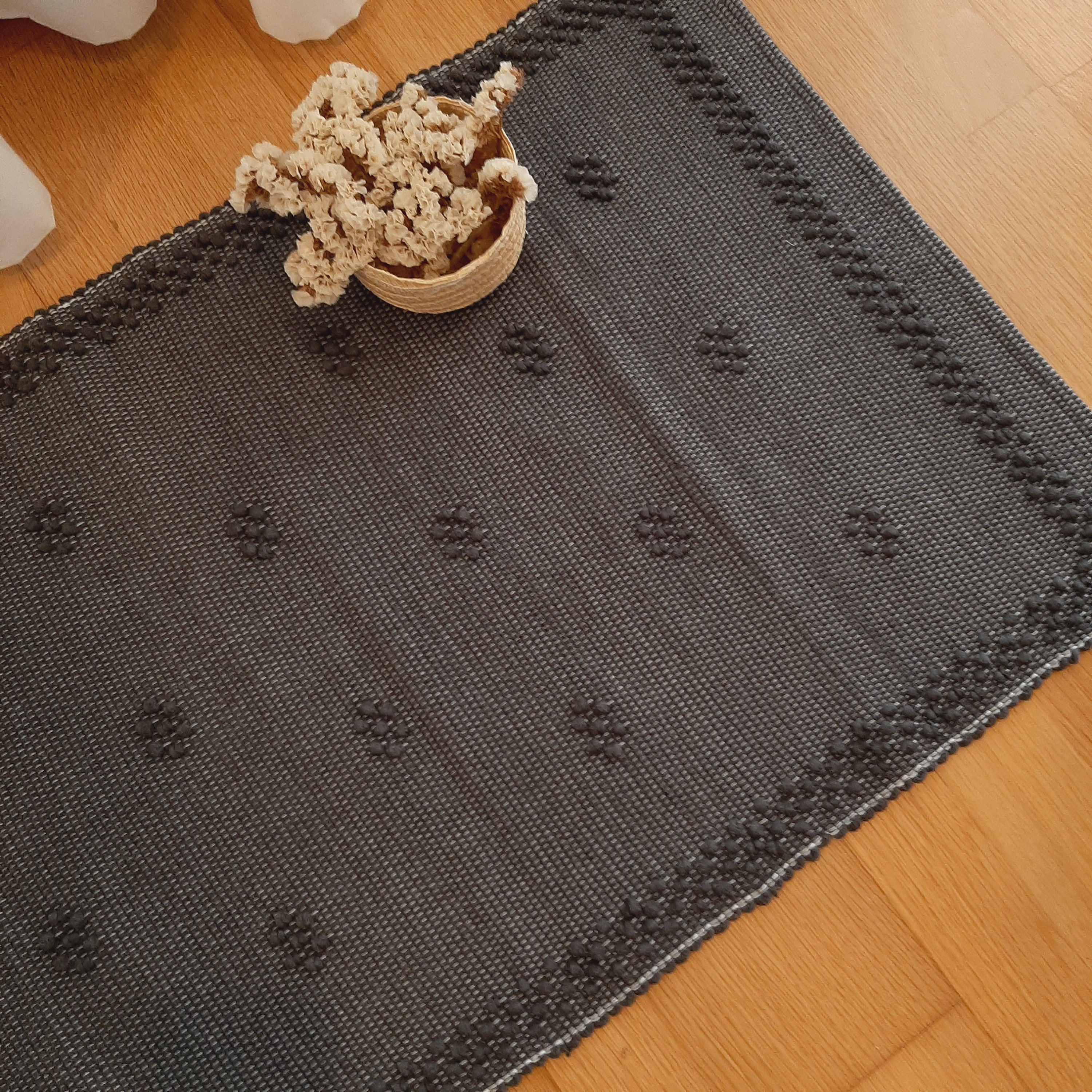 Small Graphite Grey Rug / Bath Mat / Cotton Rug / Bedside Rug / Rag...