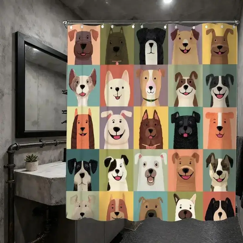 cute pet day shower curtain from pet market series with hooks for bathtub bathroom home decor Enhanc...