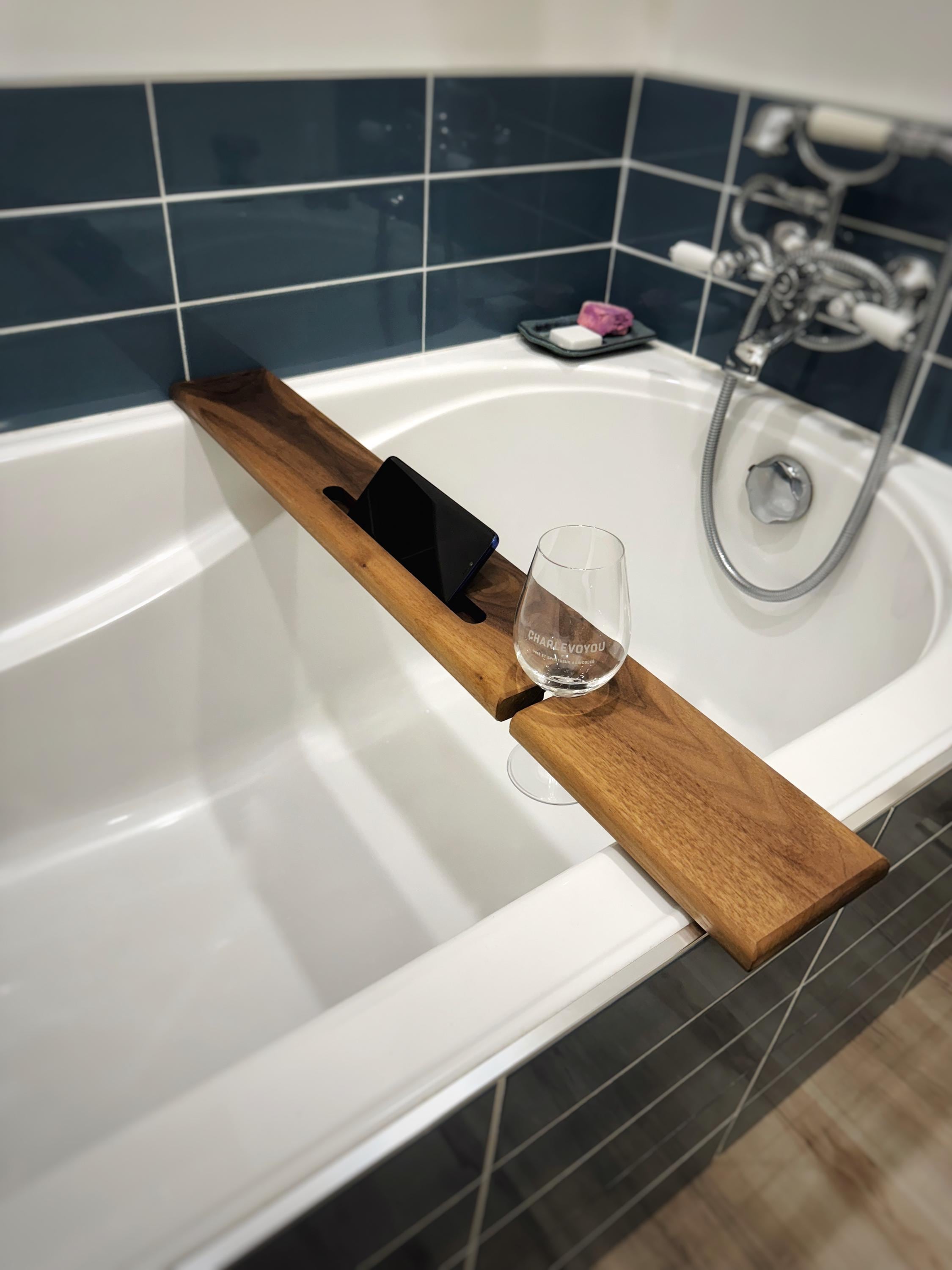 -ITEM- - Stunning minimalist style bath caddy in black walnut - Theres a slot for a phone/tablet and...