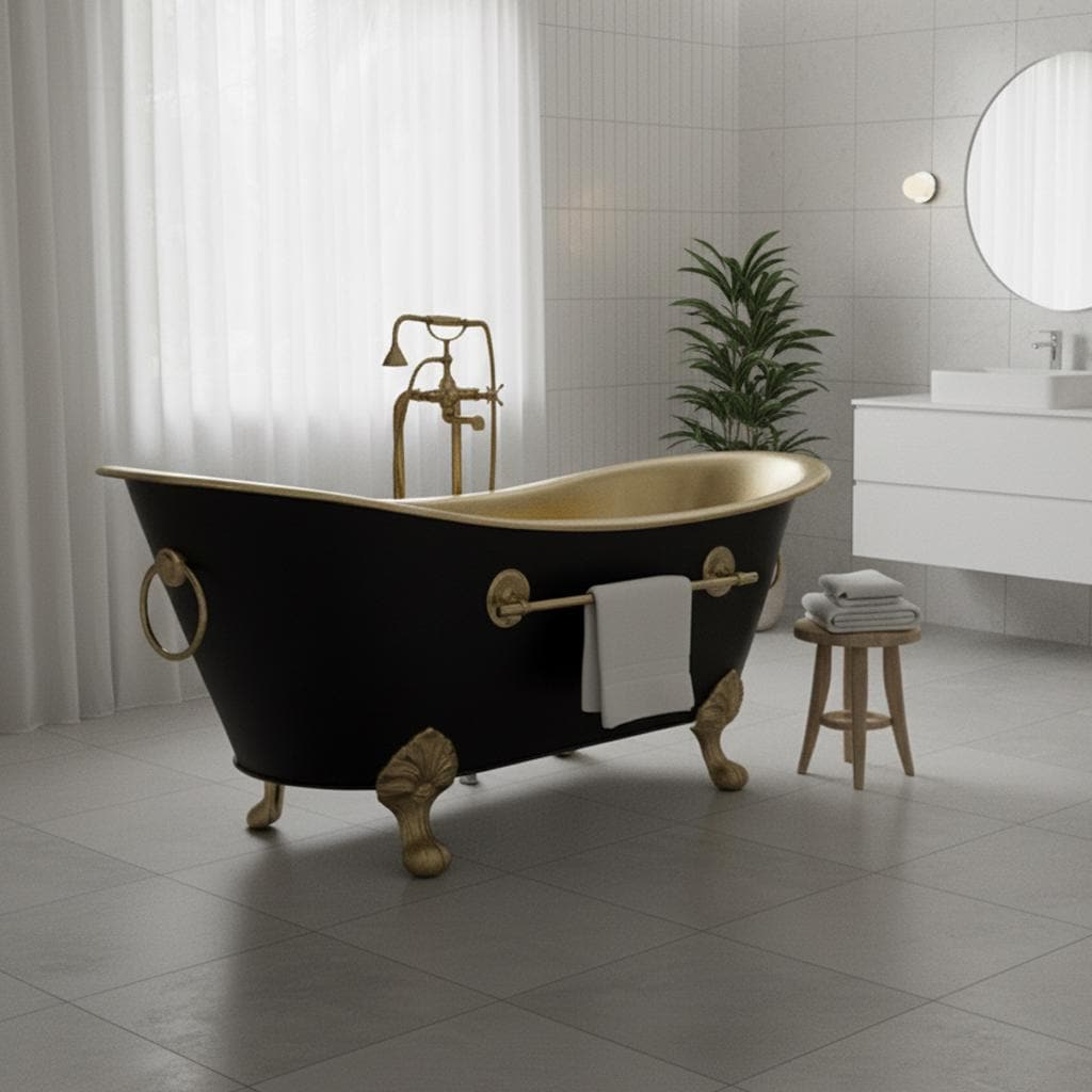 Handmade Copper Clawfoot Bathtub: Black Exterior, Brass Soaking Tub...