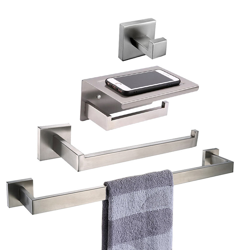 Quantity:4pcs; Shape:Square; Type:Towel Bar,Toilet Paper Holder,Robe Hook; Application:Bathroom; Sty...