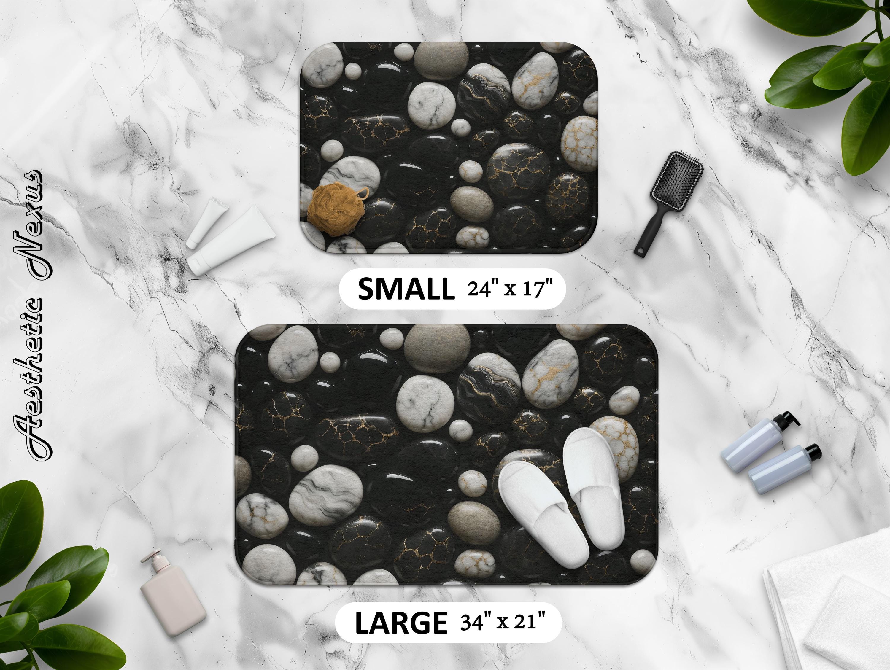 Black & White Marble Stones Bathmat, Modern Luxury Bathroom Rug...
