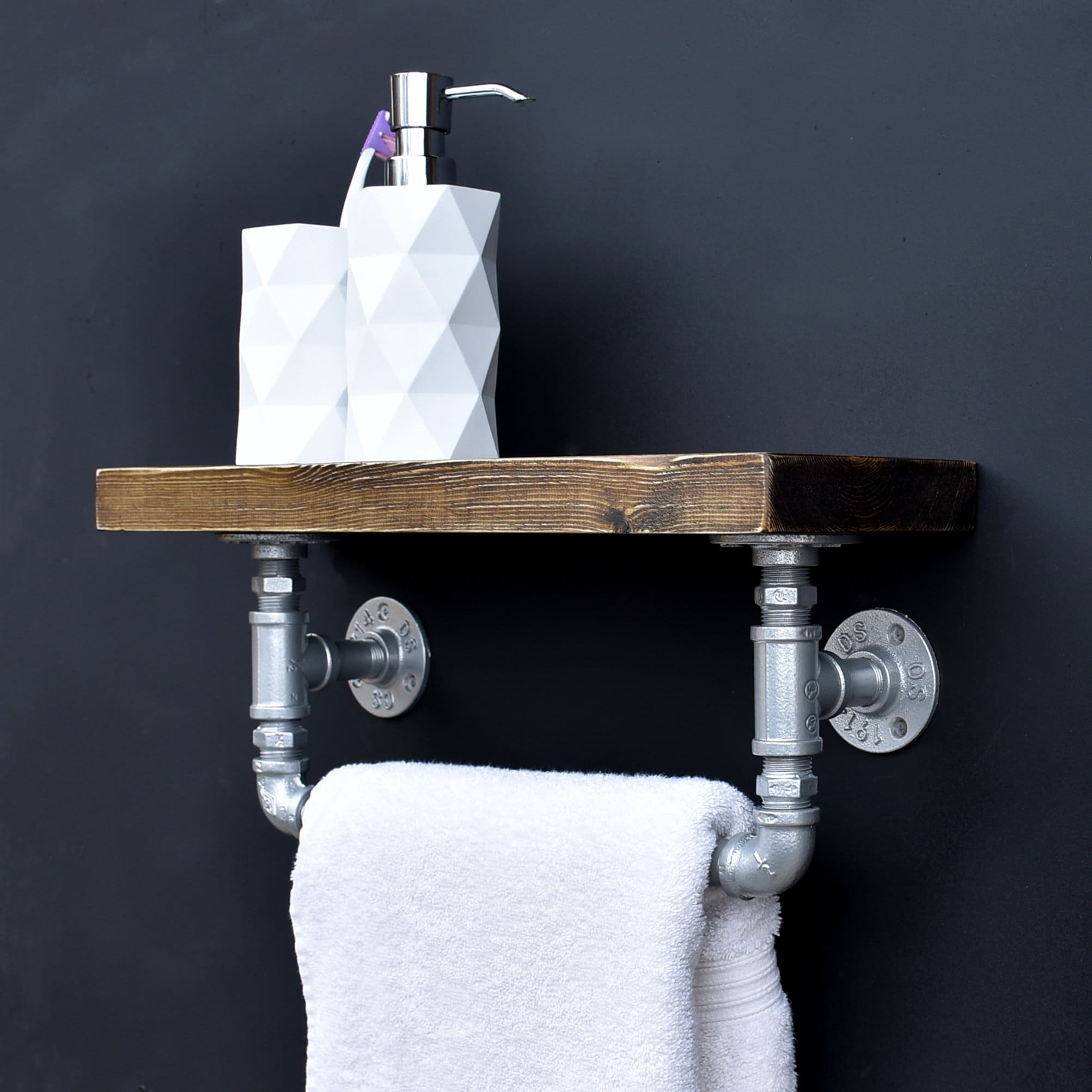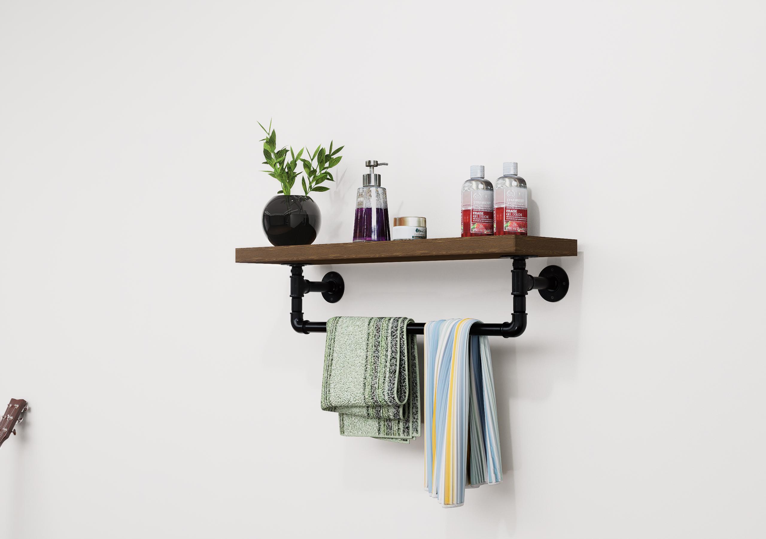 Wooden shelf with towel Rail | Industrial Towel Holder With Shelf S...