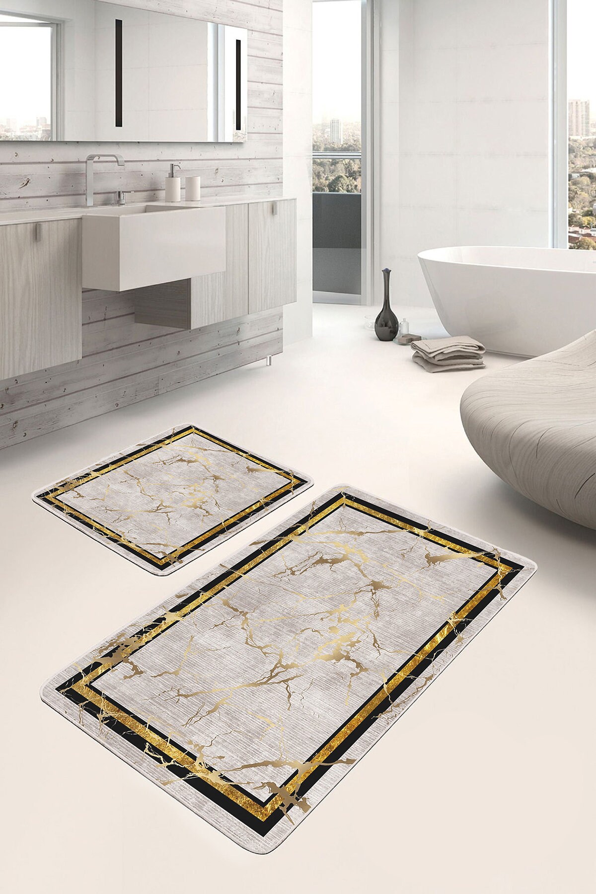 The Meeting of Luxury and Comfort: Our Soft 2-Piece Bath Mat with Gold Pattern We offer a perfect so...