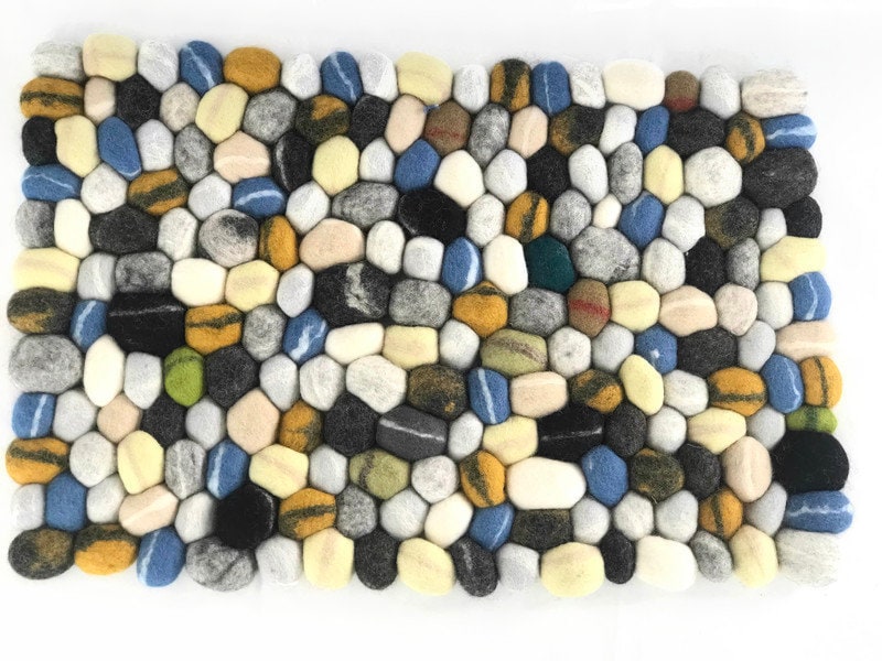 100% Natural Felt stone rug, Custom Felt carpet, Felted wool stone,...