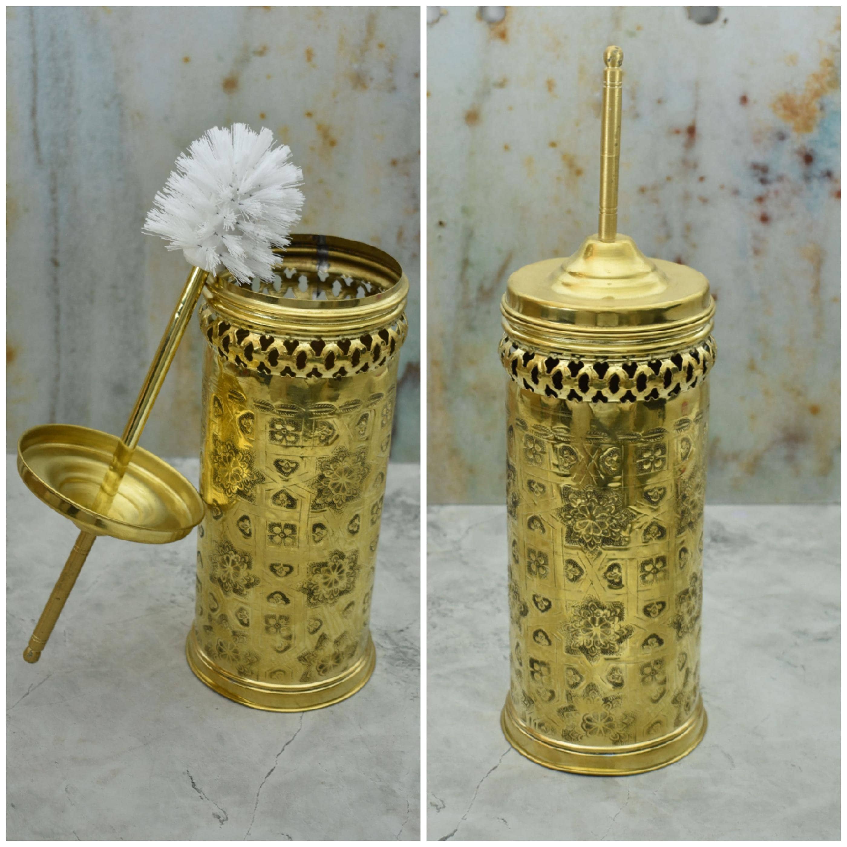 Handcrafted Moroccan Brass Toilet Brush Holder, Unlacquered Brass t...