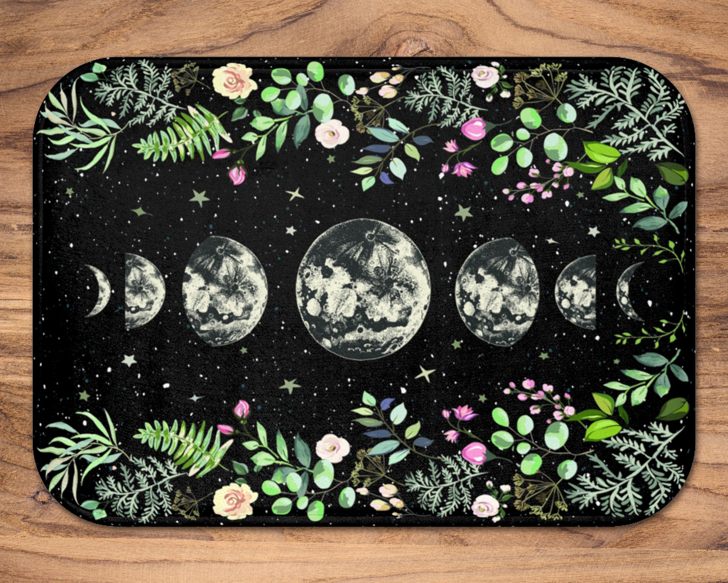 Moonlit Garden Bath Mat Moon Phases Bathroom Decor Lunar Phases Moo...
